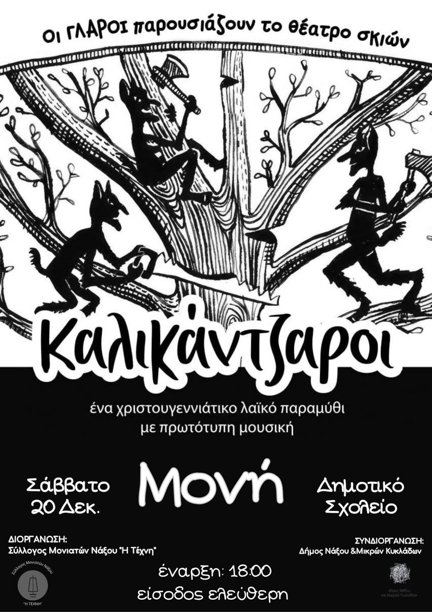 Συγκεκριμένα, ο χώρος του Δημοτικού Σχολείου μεταμορφώνεται σε έναν “διαστημικό κήπο”, έναν ζωντανό γαλαξία γεμάτο πλανήτες, αστερισμούς, θεούς του Ολύμπου, φιλικούς εξωγήινους και μονοπάτια που οδηγούν στη φαντασία και στο φως, ενώ στη Μονή, το χωριό της κεντρικής ορεινής Νάξου, το Σάββατο 20 Δεκεμβρίου, το αντίστοιχο δημοτικό σχολείο υποδέχεται τους καλικάτζαρους μέσα από μία παράσταση θεάτρου σκιών, που θα ανεβάσει η ομάδα κουκλοθεάτρου και παραμυθιού “Γλάροι”.