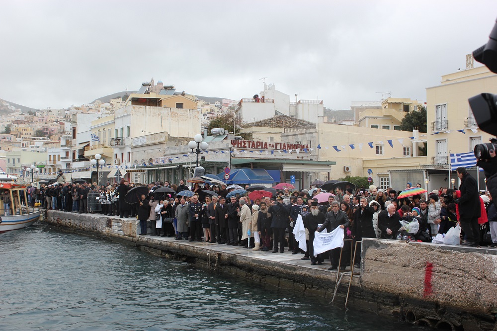 Αξίζει να αναφερθεί πως, τη θρησκευτική εκδήλωση πλαισίωσε το πλήθος των πιστών από την ξηρά, αλλά και πλωτά μέσα του Λιμενικού Σώματος, μικρά ιδιωτικά καΐκια και φουσκωτά τα οποία ήταν στολισμένα ενώ τη ρίψη του Σταυρού χαιρέτησαν και τα πλοία που βρίσκονταν στο λιμάνι της Ερμούπολης. Οι τυχεροί που έπιασαν τον Σταυρό ήταν οι: Τάσος Λουδάρος και Χαράλαμπος Τζέρμπος.