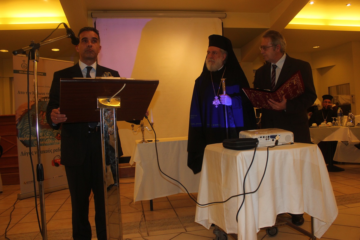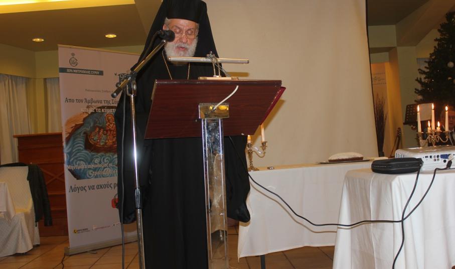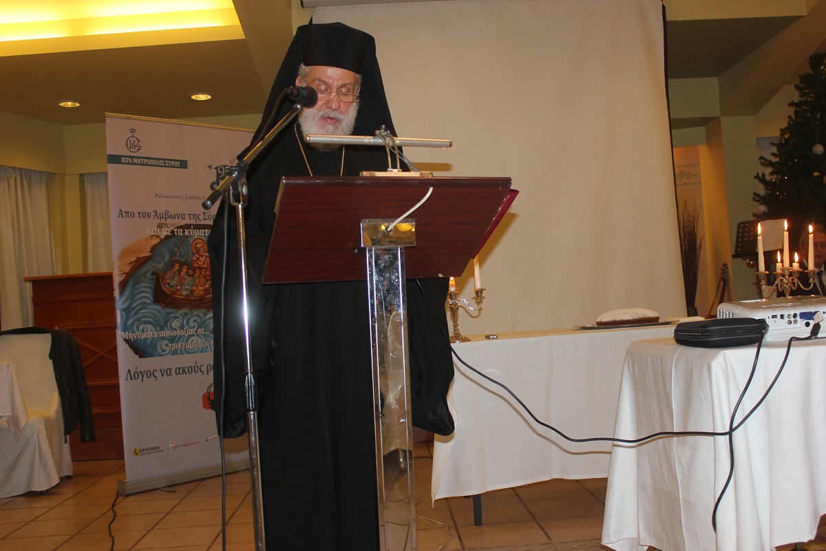 Η πανηγυρική εκδήλωση της Ιεράς Μητροπόλεως Σύρου προς τιμήν των συνεργατών της, οι οποίοι ενισχύουν μέσα από τη δράση τους το κοινωνικό και φιλανθρωπικό έργο της πραγματοποιήθηκε το απόγευμα της Παρασκευής στην Αίθουσα Εκδηλώσεων του Ξενοδοχείου "Ερμής".