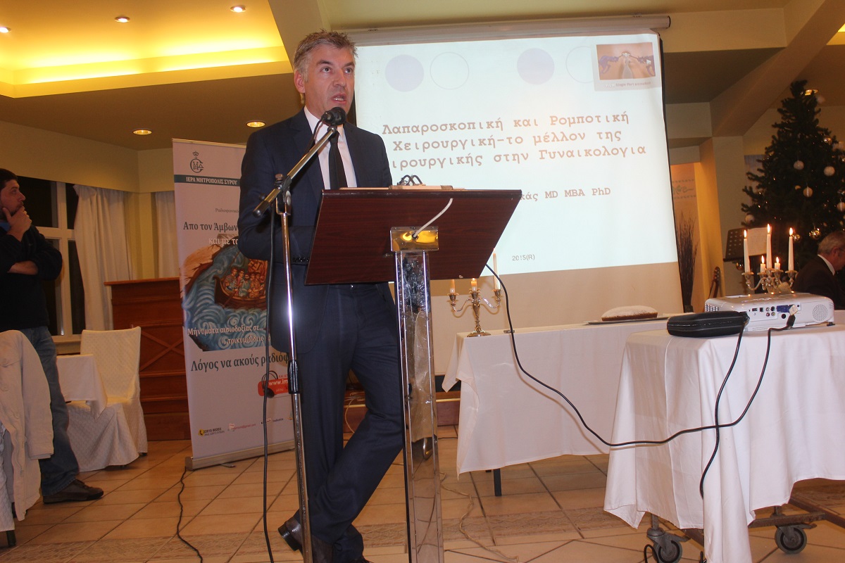 Κατά τη διάρκεια της εκδήλωσης, ο Σεβασμιώτατος Μητροπολίτης Σύρου κ. Δωρόθεος Β' προχώρησε σε έναν απολογισμό των δράσεων της Ιεράς Μητρόπολης, ενώ ο διακεκριμένος Συριανός Επιστήμονας Στέφανος Χανδακάς, Λέκτορας της Ιατρικής Σχολής Πανεπιστημίου Αθηνών & Επιστημονικός Συνεργάτης του Νοσοκομείου “ΜΗΤΕΡΑ” ανέπτυξε το θέμα “Λαπαροσκοπική και ρομποτική χειρουργική – το μέλλον της χειρουργικής στη γυναικολογία”.
