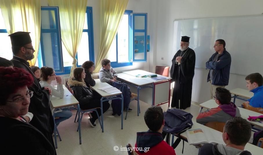 Στην Κίμωλο μετέβη χθες ο Σεβασμιώτατος κ. Δωρόθεος Β΄ και επισκέφθηκε τα Σχολεία όλων των Βαθμίδων του νησιού, γενόμενος εγκάρδια δεκτός από τους εκπαιδευτικούς και τους μαθητές, προς τους οποίους απηύθυνε πατρικές συμβουλές κι ευχές.
