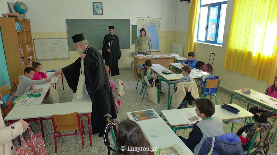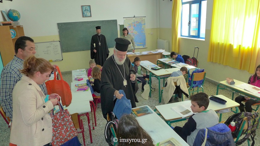 Ιδιαίτερα, ευχήθηκε για το Πάσχα και διένειμε σχολικές τσάντες, προσφορά της ΜΚΟ της Ιεράς Αρχιεπισκοπής Αθηνών "ΑΠΟΣΤΟΛΗ" και βιβλία εποικοδομητικού περιεχομένου. Το απόγευμα, χοροστάτησε κατά την Ακολουθία του Μ. Αποδείπνου στον Ι. Ναό Παναγίας της Οδηγητρίας.