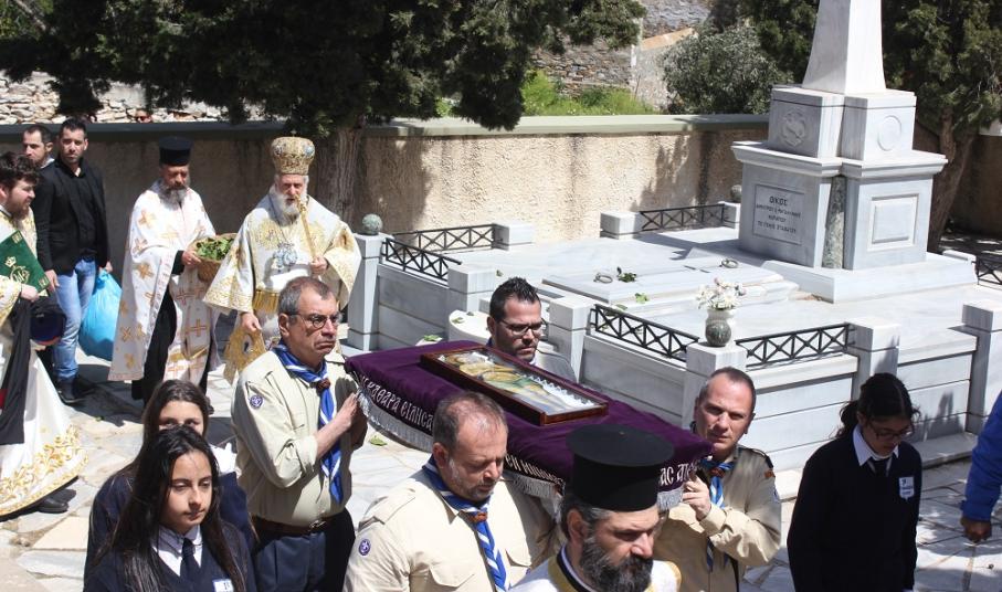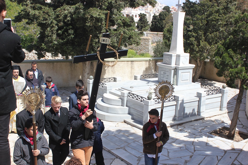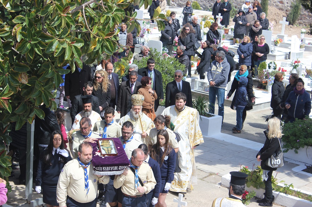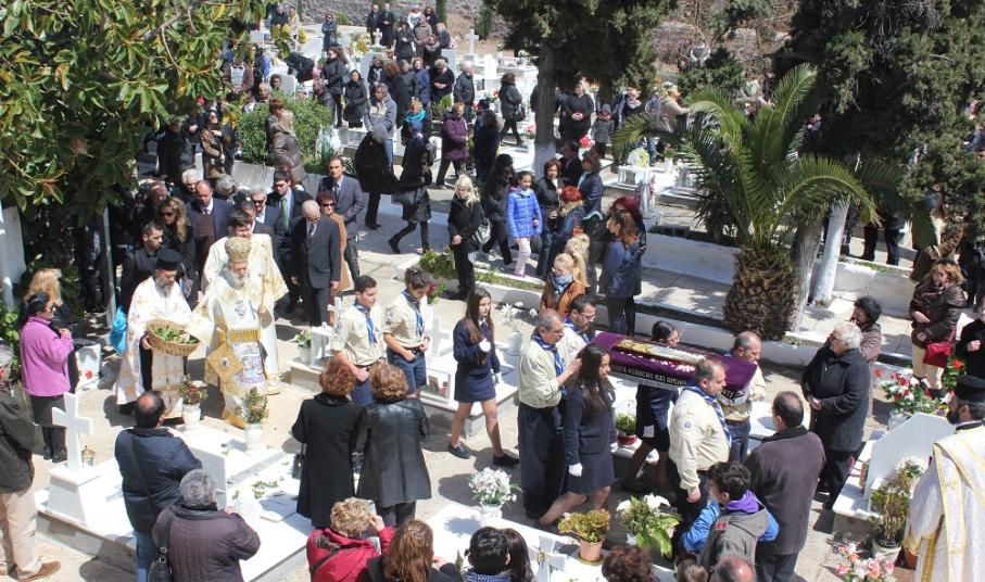 Βαθιά συγκίνηση πλημμύρισε τις καρδιές όλων των πιστών το μεσημέρι της Μεγάλης Παρασκευής ο λόγος του Σεβασμιωτάτου Μητροπολίτη Σύρου, κ. Δωροθέου Β΄, μετά την περιφορά του Επιταφίου στο Κοιμητήριο του Αγίου Γεωργίου, όπου και τελέσθηκε η καθιερωμένη επιμνημόσυνη δέηση.