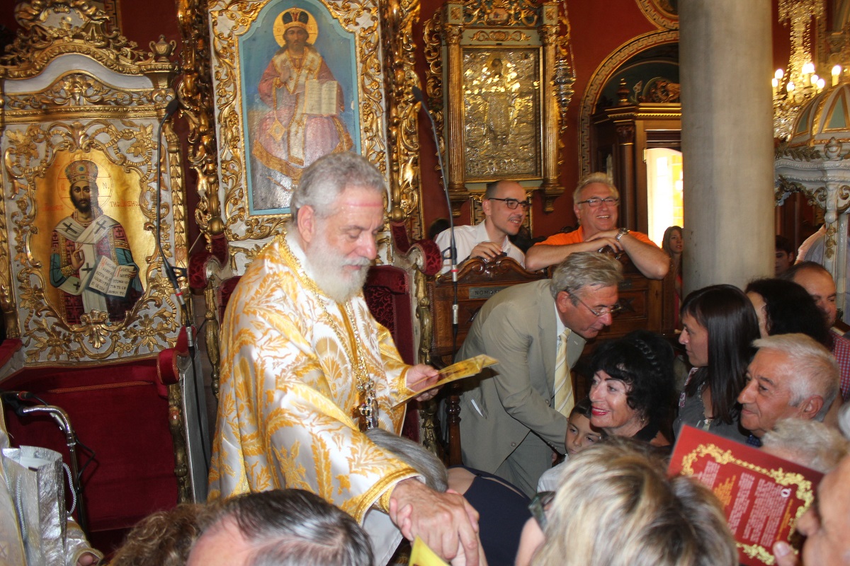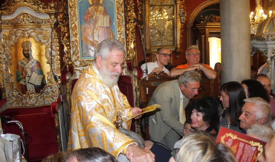 Επιπλέον, ο Σεβασμιώτατος δέχτηκε ευχές για την ονομαστική εορτή του, την οποία επέλεξε να γιορτάσει φέτος δίπλα στους καλόκαρδους και απλοϊκούς κατοίκους της απομακρυσμένης Κιμώλου, οι οποίοι με όλη τη δύναμη της ψυχής τους έδειξαν τα πλούσια αισθήματα της αγάπης και του σεβασμού προς το σεπτό πρόσωπό του. Ωστόσο και οι πιστοί της Σύρου συνέρρευσαν σήμερα το πρωί στον Ιερό Μητροπολιτικό Ναό της Μεταμορφώσεως για να ευχηθούν στον Επίσκοπό τους, στον κατ' εξοχήν φορέα πνευματικής ευθύνης, καλή συνέχεια στη δύσκολη αποστολή του, πάντα με την ενίσχυση και τη χάρη του Χριστού.