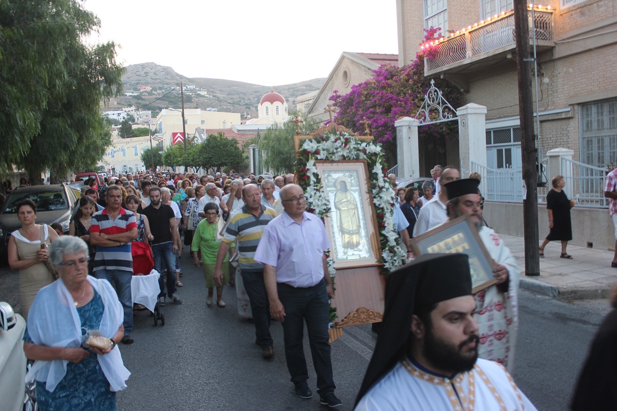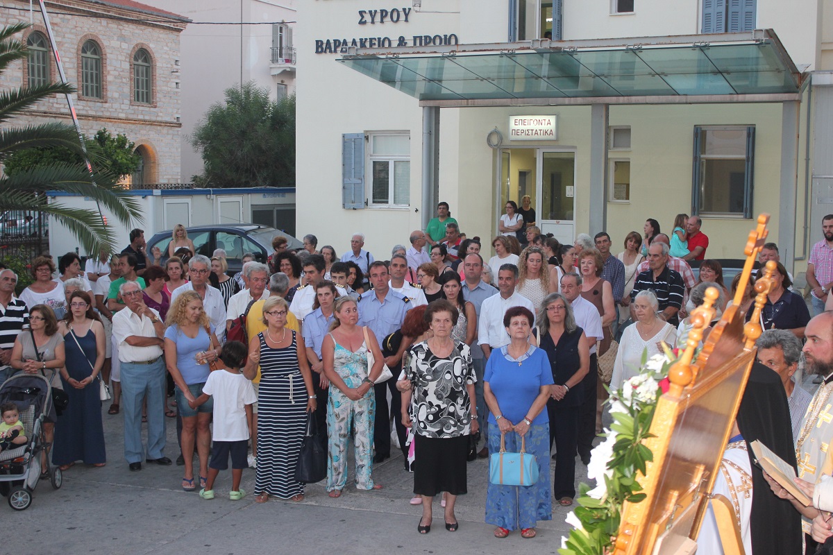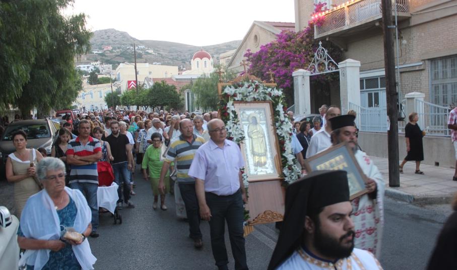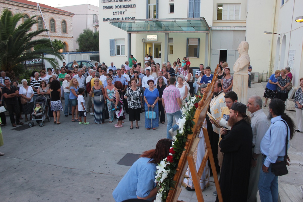 Ανήμερα του εορτασμού, τελέστηκε στις 19:00 Μέγας Εσπερινός με αρτοκλασία, μετά το πέρας του οποίου,ακολούθησε η Λιτάνευση της Ιερής Εικόνας του Αγίου. Κατά τη διάρκεια της Λιτάνευσης, η Εικόνα επισκέφτηκε τον αύλειο χώρο του Γενικού Νοσοκομείου Σύρου, όπου τελέστηκε δέηση υπέρ της υγείας των ιατρών και εργαζομένων, αλλά και της αποκατάστασης της υγείας των νοσηλευόμενων ασθενών.