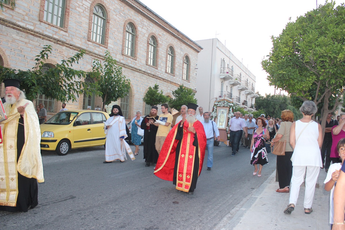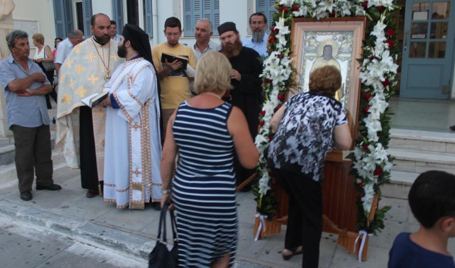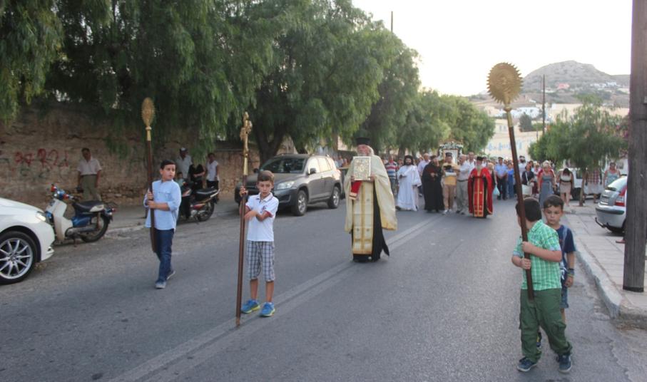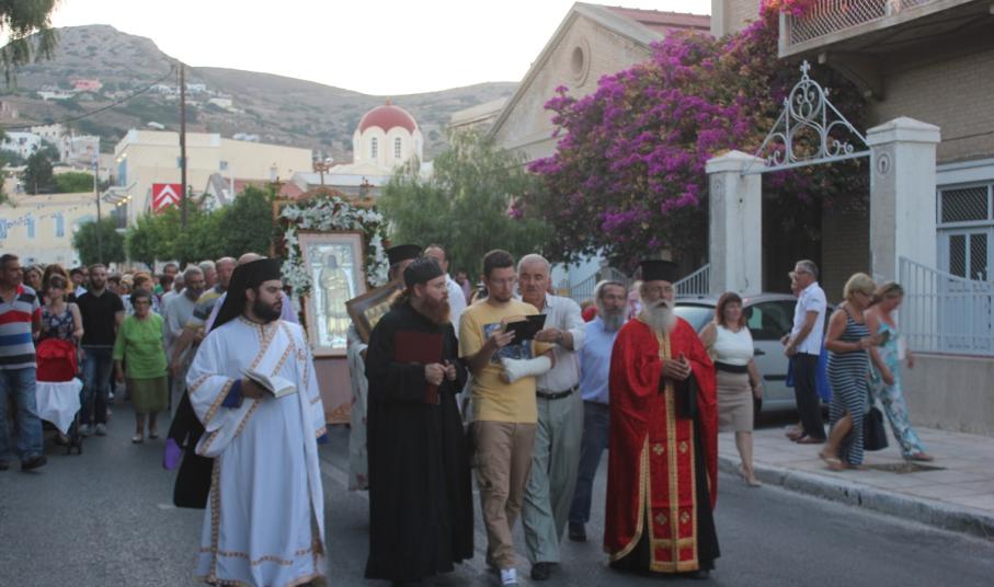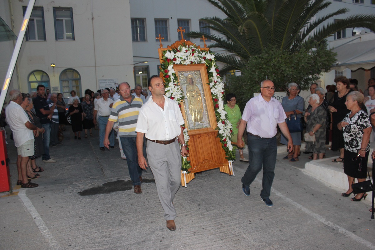 Ανήμερα του εορτασμού, τελέστηκε στις 19:00 Μέγας Εσπερινός με αρτοκλασία, μετά το πέρας του οποίου,ακολούθησε η Λιτάνευση της Ιερής Εικόνας του Αγίου. Κατά τη διάρκεια της Λιτάνευσης, η Εικόνα επισκέφτηκε τον αύλειο χώρο του Γενικού Νοσοκομείου Σύρου, όπου τελέστηκε δέηση υπέρ της υγείας των ιατρών και εργαζομένων, αλλά και της αποκατάστασης της υγείας των νοσηλευόμενων ασθενών.