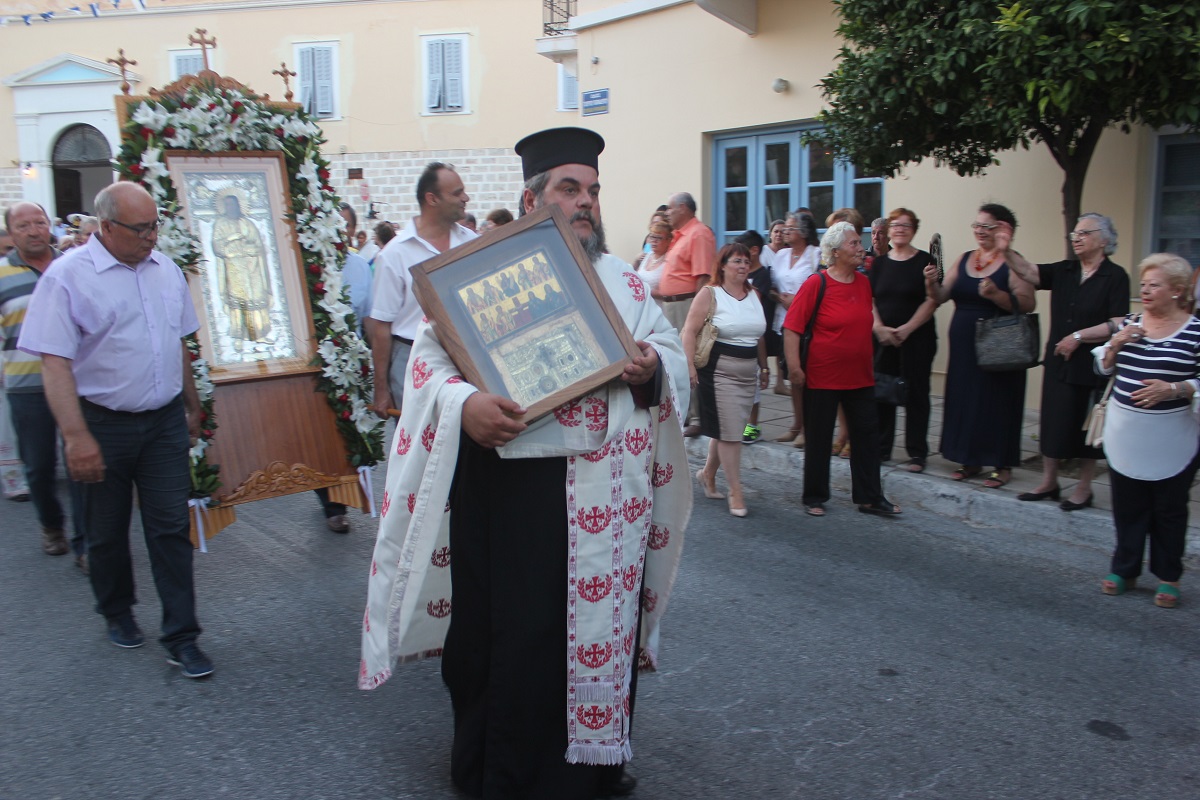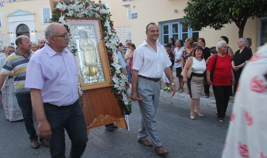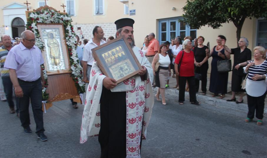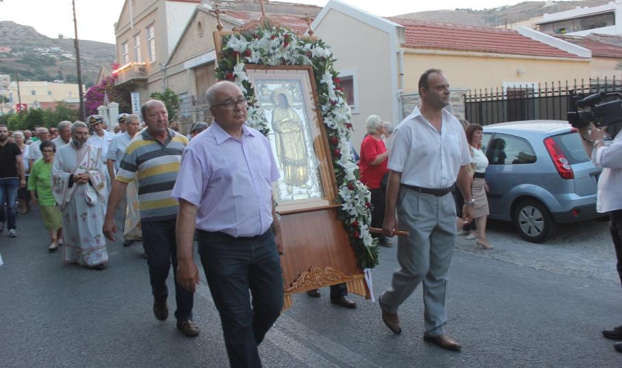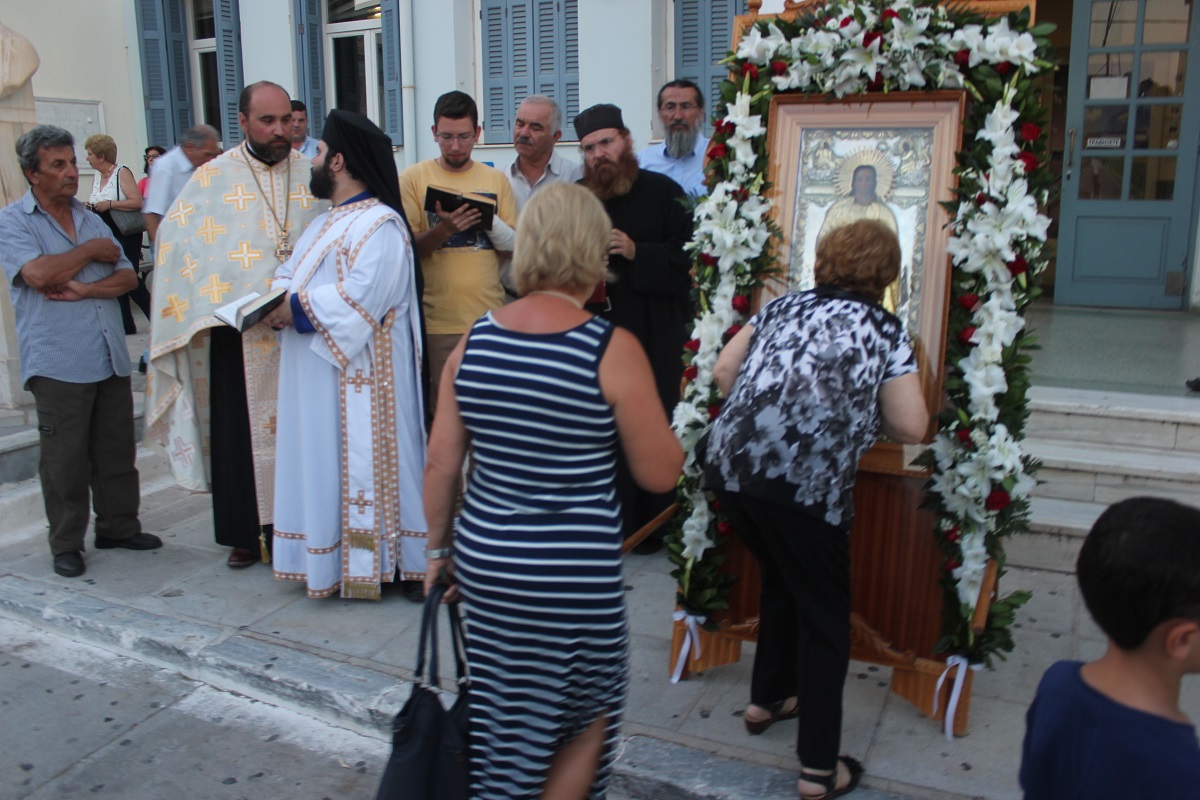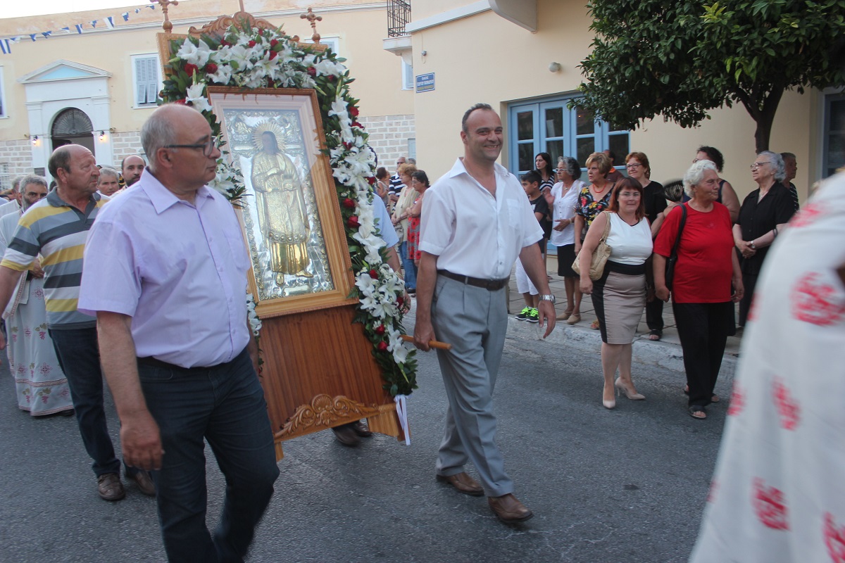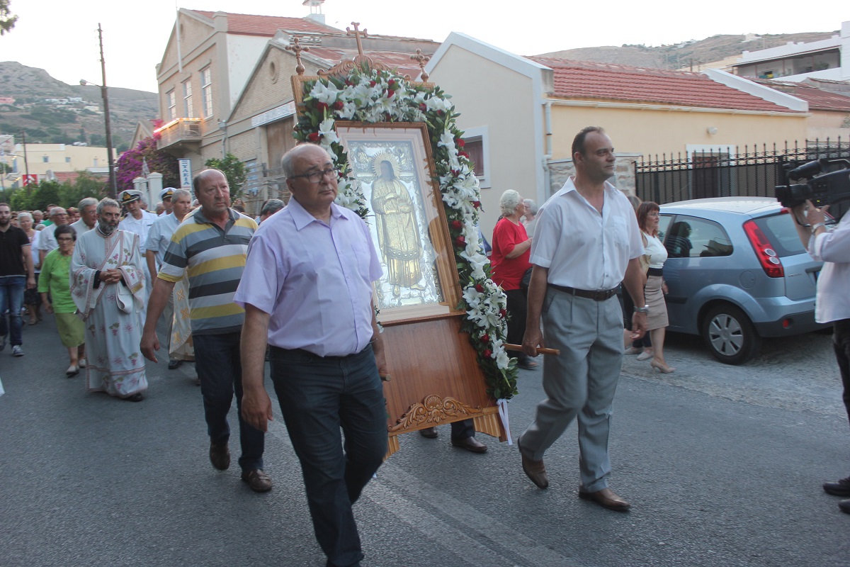 Την ιερά εικόνα του θαυματουργού Αγίου Παντελεήμονα σήκωσαν με τα χέρια τους ο πρόεδρος του Λιμενικού Ταμείου Σύρου Δημήτρης Κοσμάς και ο διευθυντής της ΔΕΥΑΣ, Γιώργος Βακόνδιος.