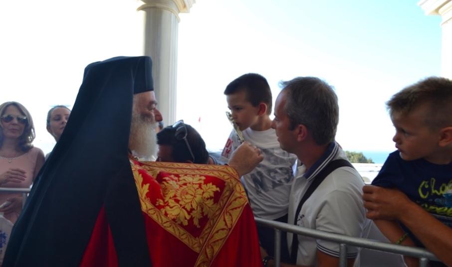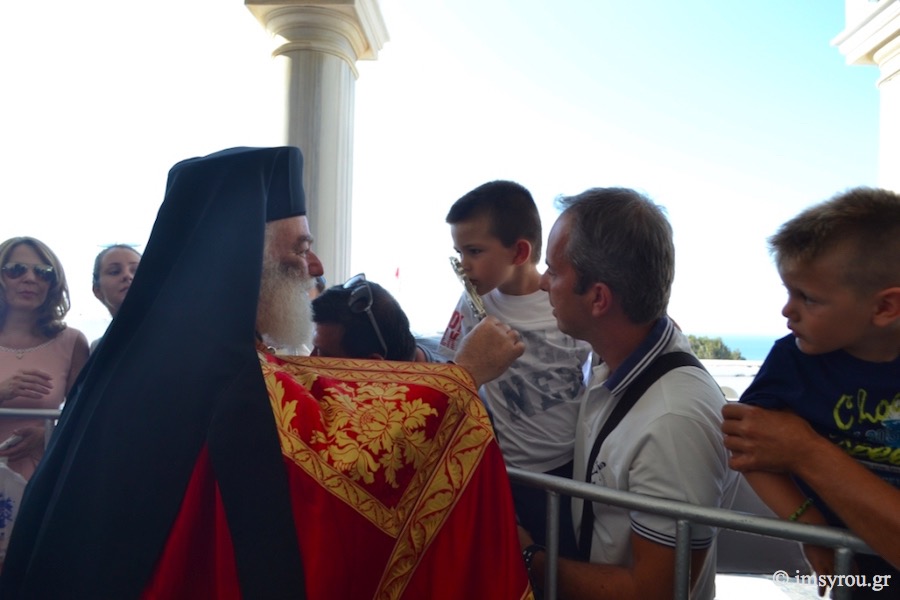 Μετά την άφιξη του Μακαριωτάτου Πατριάρχου, το πρώτον επισκεπτομένου ως Πατριάρχου το ιερό νησί, τελέσθηκε κατά το εκκλησιαστικόν έθος Δοξολογική Δέησις στον Πανίερο Ναό της Ευαγγελιστρίας. Τον Μακαριώτατο Πατριάρχη συνοδεύουν οι Μητροπολίτες Νέας Γουινέας κ. Γεώργιος και Μπραζαβίλ και Γκαμπόν κ. Παντελεήμων.