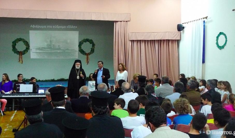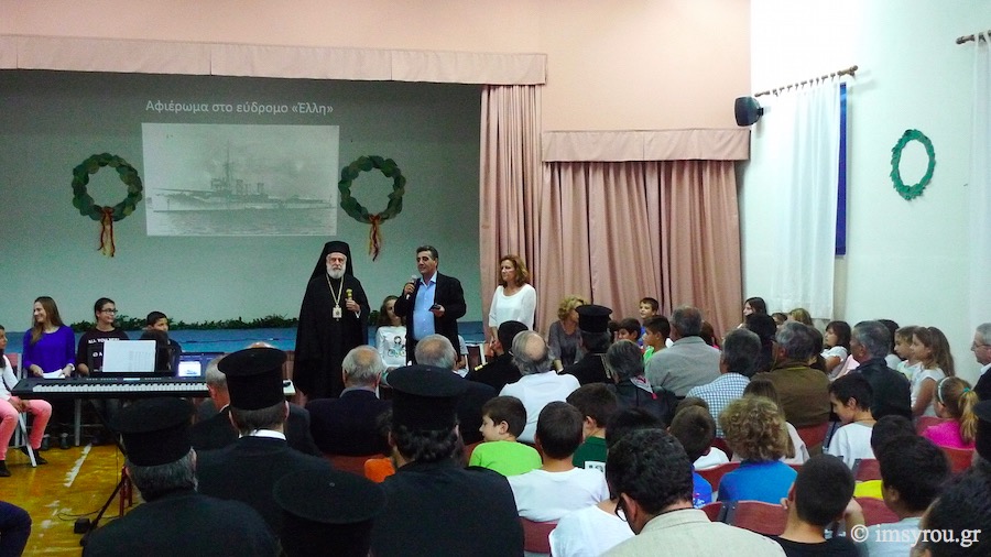 Την Αίθουσα πολλαπλών χρήσεων του Γ' Δημοτικού Σχολείου της ιεράς νήσου Τήνου, αφιερωμένης στα ηρωικά Θύματα του Ευδρόμου "ΕΛΛΗ", εγκαινίασε σήμερα το μεσημέρι ο Σεβασμιώτατος κ. Δωρόθεος Β', παρουσία του Επάρχου Τήνου κ. Ι. Γιαγιά, του  Δημάρχου Τήνου κ. Σίμου Ορφανού, του Αντιπροέδρου και Μελών της Διοικούσης το ΠΙΙΕΤ Επιτροπής , του επί τιμή Αντιπροέδρου του ΠΙΙΕΤ κ. Ευ.Γκίζη, του Λιμενάρχη Τήνου, των Εκπαιδευτικών και Μαθητών και της Προέδρου και Μελών του Συλλόγου Γονέων και Κηδεμόνων του Σχολείου.