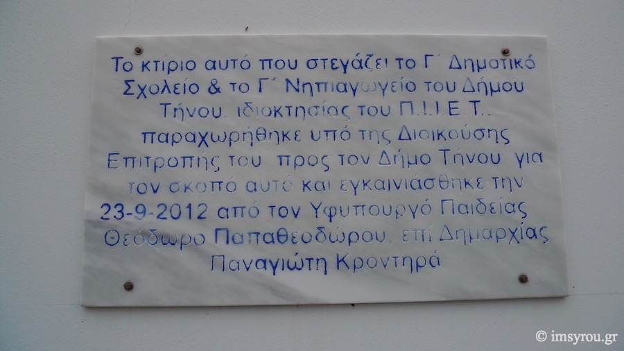 Μετά τον χαιρετισμό του Δημάρχου Τήνου,πραγματοποιήθηκαν τα αποκαλυπτήρια αναμνηστικής πλάκας από το Σεβασμιώτατο κ. Δωρόθεο Β', το Δήμαρχο Τήνου και τον Αντιπρόεδρο του ΠΙΙΕΤ.