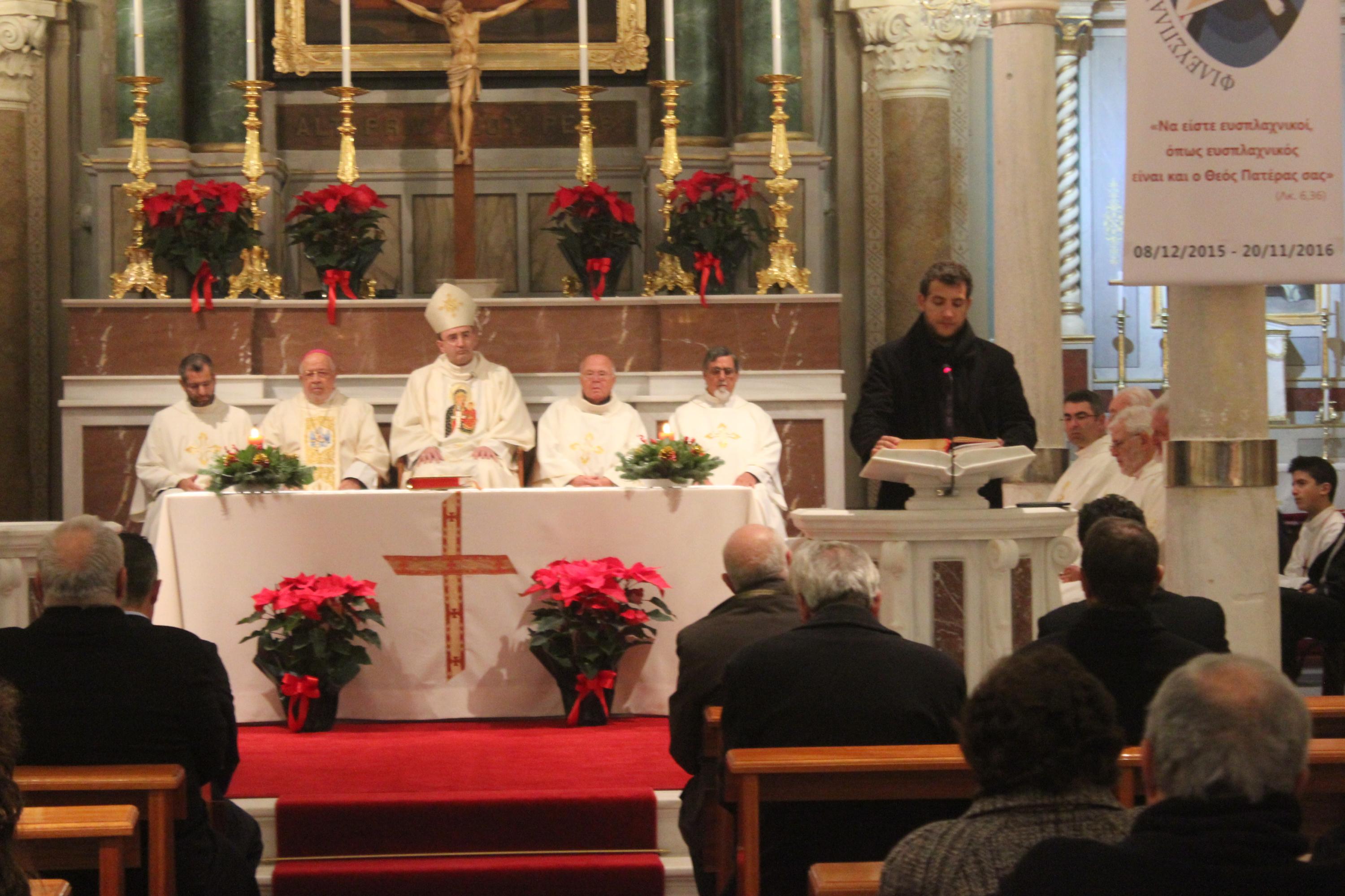 Στη Δοξολογία για το Νέο Έτος και την Θεία Ευχαριστία συλλειτούργησαν ο πρώην Καθολικός Επίσκοπος Σύρου Σεβ. π. Φραγκίσκος Παπαμανώλη, ο ιερός κλήρος, ενώ όπως κάθε χρόνο παρέστηστηαν ο Σεβασμιώτατος Μητροπολίτης Σύρου κ. Δωρόθεος Β’ και εκπρόσωποι των τοπικών αρχών.