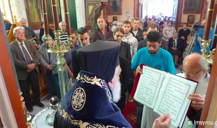 Στη συνέχεια, τέλεσε την Ακολουθία του Νιπτήρος στον Ιερό Ναό Αγίου Ιωάννου Ποσειδωνίας, όπου, μεταξύ των εκκλησιασθέντων, παρίσταντο ο Δήμαρχος Σύρου-Ερμούπολης Γιώργος Μαραγκός, ο Αντιδήμαρχος Αλέξης Αθανασίου, ο Πρόεδρος της Τοπικής Κοινότητος Ποσειδωνίας Δημήτρης Νταλαχάνης και Δημοτικοί Σύμβουλοι.