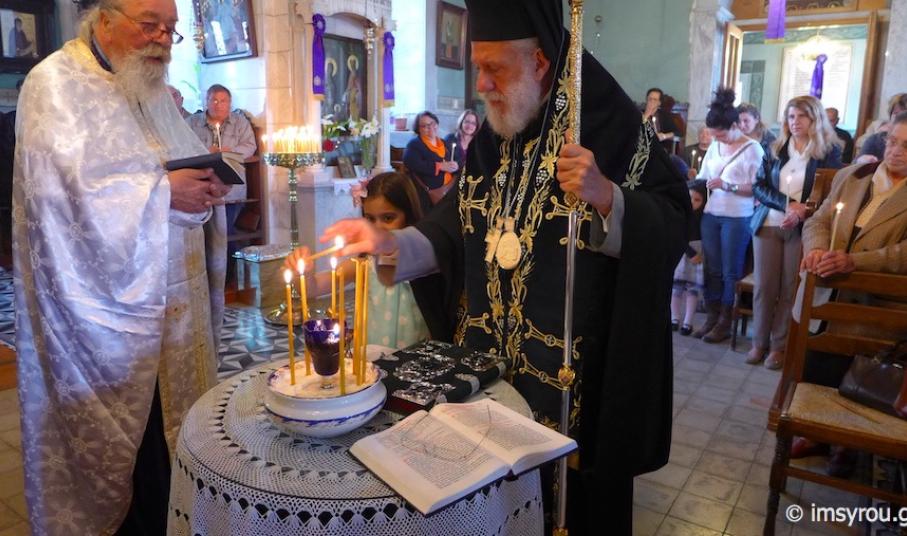 Στον Ιερό Ναό του Αγίου Παντελεήμονος, στο Γηροκομείο της Φιλοπτώχου Εταιρείας Ερμουπόλεως και στον Ενοριακό Ιερό Ναό του Αγίου Κωνσταντίνου στην περιοχή "Πέτρα" ο Σεβασμιώτατος Μητροπολίτης Σύρου κ. Δωρόθεος Β’ τέλεσε διαδοχικά την Ακολουθία του Ιερού Ευχελαίου, το απόγευμα της Μεγάλης Τετάρτης.