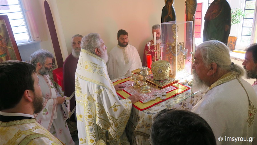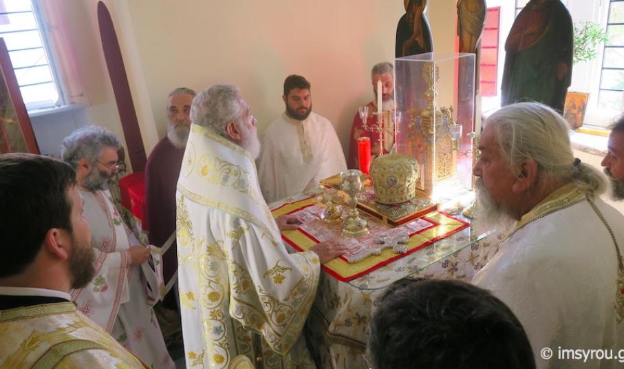 Ο Σεβασμιώτατος κ Δωρόθεος Β΄ ιερούργησε στο Καθολικό της Ιεράς Μονής του Γενεθλίου του Τιμίου Προδρόμου, Ταλάντων Σύρου, συμπαραστατούμενος από τον Ηγούμενο, Αρχιμ. Δωρόθεο Γάγγο και ιερείς της Σύρου, παρουσία της Διευθύνσεως, του Προσωπικού και των περιθαλπομένων στον εκεί στεγαζόμενο Οίκο Ευγηρίας γερόντων και γεροντισσών και πλήθους προσκυνητών.
