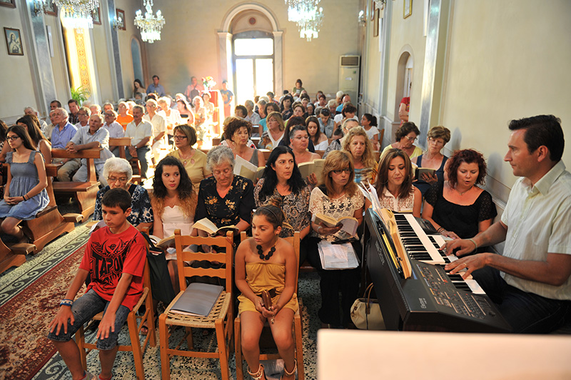 Η Εκκλησία ήταν ασφυκτικά γεμάτη από ενορίτες αλλά και λαϊκούς από όλες τις Ενορίες της Σύρου. Η Χορωδία της Ενορίας έψαλλε ,όπως πάντα, με επιτυχία τους ύμνους της Θείας Λειτουργίας.