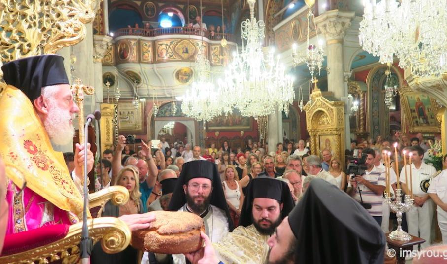 Η σπουδαία δεσποτική εορτή της Μεταμορφώσεως του Σωτήρος εορτάστηκε και φέτος με λαμπρότητα στον ομώνυμο ιστορικό Μητροπολιτικό Ιερό Ναό της Ερμουπόλεως, ο οποίος ανεργέρθηκε το 1824 από τους Μικρασιάτες, Χίους και Ψαριανούς πρόσφυγες και πρώτους οικιστές της Ερμούπολης,
