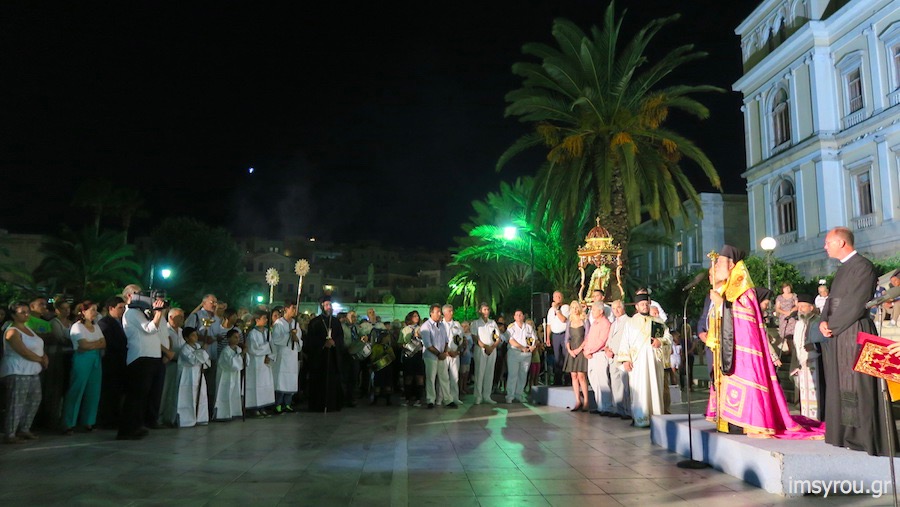 Στον Εσπερινό παρευρέθηκε πλήθος πιστών, μεταξύ των οποίων, ο Δήμαρχος Σύρου – Ερμούπολης Γιώργος Μαραγκός, περιφερειακοί και δημοτικοί σύμβουλοι, οι Πολιτευτές των Κυκλάδων Αικ. Μονογυιού και Γ. Βακονδίος, Καθηγητών , ο Περιφερειακός Διοικητής Λιμενικού Σώματος Κυκλάδων, ο Λιμενάρχης Σύρου, ο Διοικητής της Ναυτικής Ακαδημίας Σύρου και εκπρόσωπος της Καθολικής Εκκλησίας.