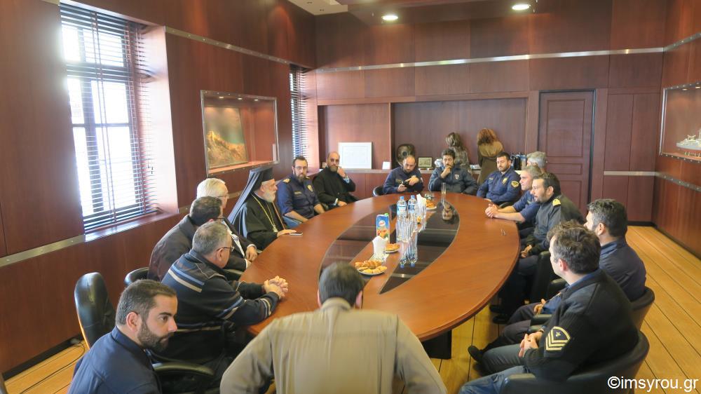 Ακολούθως, επεσκέφθη επισκευαζόμενο πλοίο Συριανού Πλοιοκτήτη και ευχήθηκε στον Πλοίαρχο και το Πλήρωμά του.