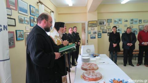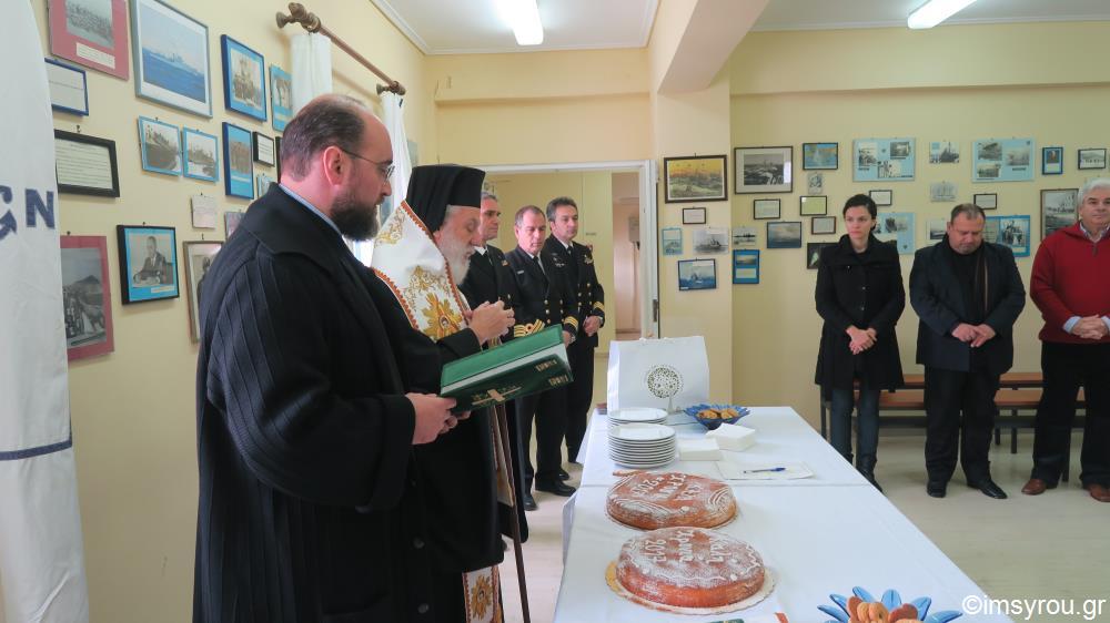 Την Πολεμική Ναυτική Βάση Αγκαθωπών Σύρου, κατόπιν προσκλήσεως του Διοικητού της, επισκέφθηκε σήμερα, όπως ήταν από καιρού προγραμματισμένο, ο Σεβασμιώτατος κ. Δωρόθεος Β΄ και ευλόγησε την πίττα του Αγίου Βασιλείου, παρουσία των Αντιδημάρχων Σύρου-Ερμούπολης κ.κ. Αλεξάνδρου Αθανασίου και Μάριου Βουτσίνου, εκπροσώπου της Περιφέρειας Ν. Αιγαίου, του Διοικητού της 6ης Περιφερειακής Διεύθυνσης Λιμενικού Σώματος. του Υποδιοικητού, των Αξιωματικών και Οπλιτών της Βάσεως.
