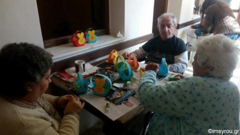 Πασχαλινές δημιουργίες –χειροτεχνίες γέμισαν με χαρά τις καρδιές των γερόντων, τον Οίκο Ευγηρίας στα Τάλαντα στην Σύρο , με την καθοδήγηση της κυρίας Ξαγοράρη Ειρήνης και των συνεργάτιδών της. Οι χειροτεχνίες είδη περικοσμούν τα δωμάτια των ηλικιωμένων, δίνοντας χρώμα και εορταστική ατμόσφαιρα. Ο Σεβασμιώτατος συνεχάρη τις τρείς φιλόπονες και εκλεκτές κυρίες.