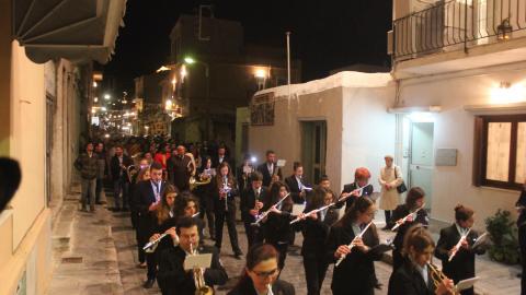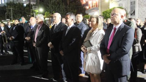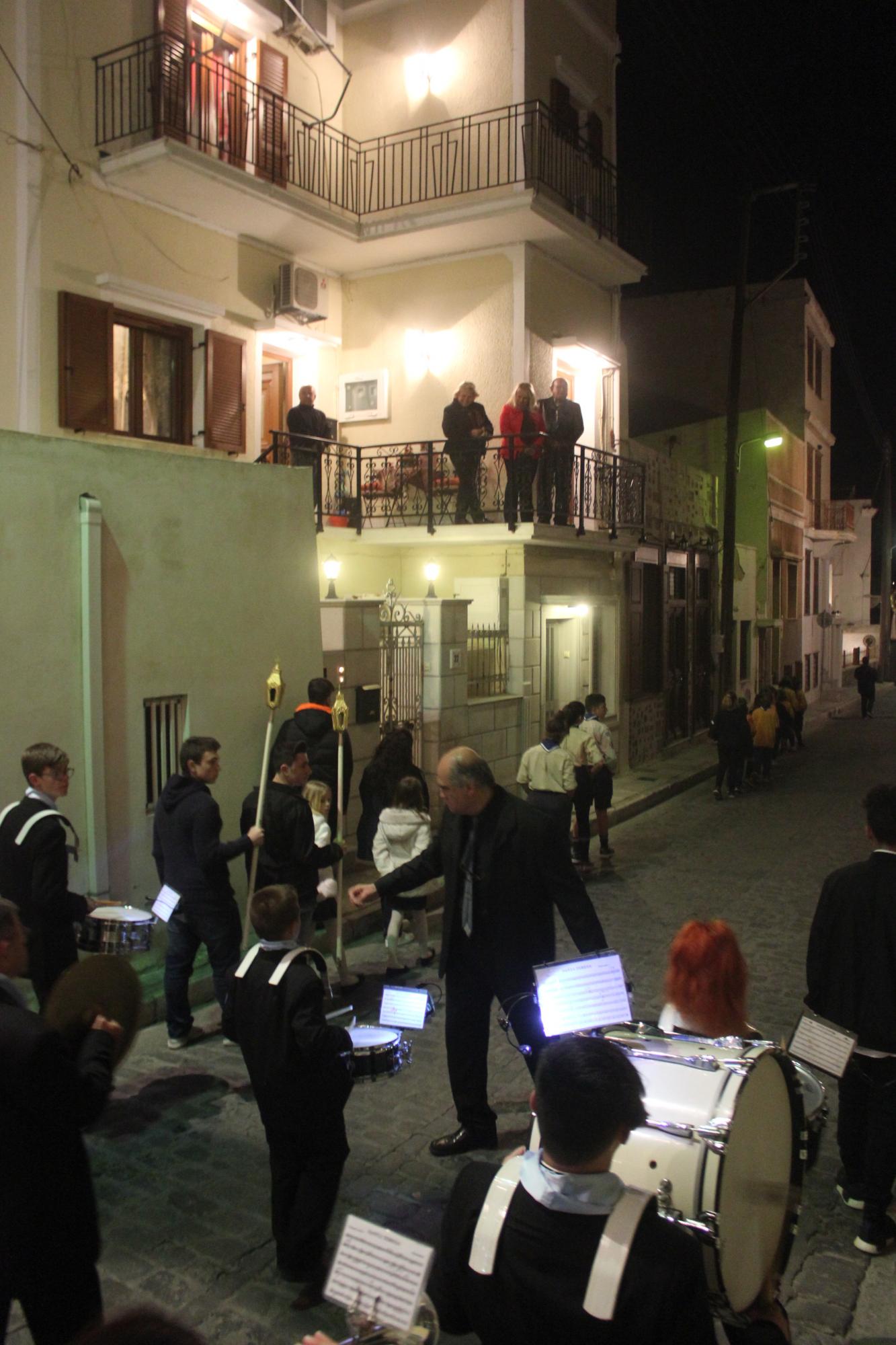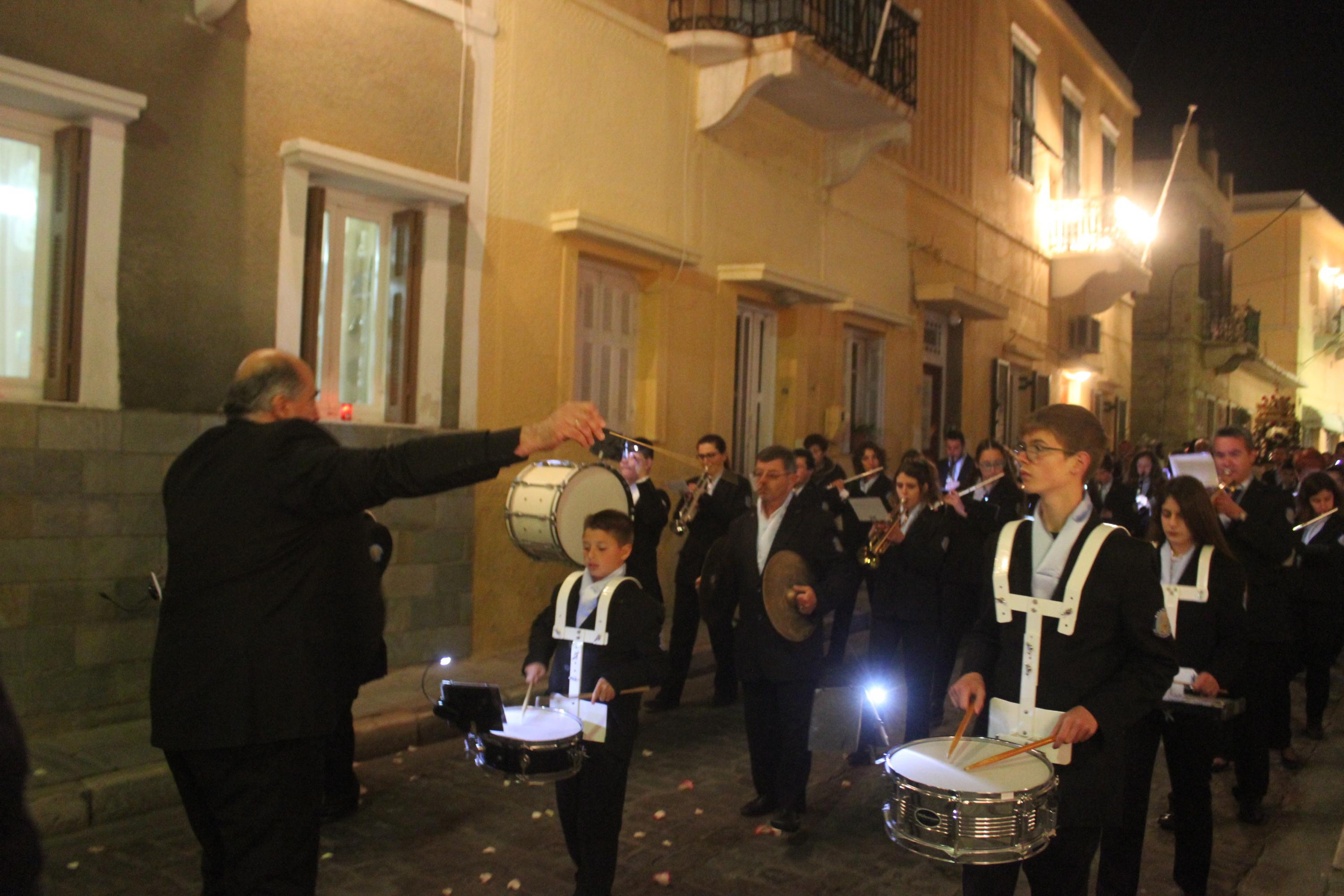 Τη λιτάνευση της ιεράς Εικόνας του Αγίου Γεωργίου, την οποία κάτοικοι των περιοχών της Νεάπολης και της πλατείας Ηρώων έραναν με ροδοπέταλα και λουλούδια από τα μπαλκόνια και τις πόρτες του, λάμπρυνε η Φιλαρμονική του Δήμου Σύρου – Ερμούπολης υπό τη διεύθυνση του μαέστρου Βύρωνα Γουδέλη.