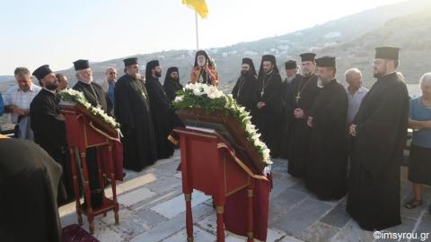 Τέλος, συνεχάρη και ευχαρίστησε τον Αρχιμ. Δωρόθεο Γάγγο για την άοκνη και ανύστακτη μέριμνά του προς τους δύο Ιερούς Ναούς της Άνω Σύρου και για την προσφορά του στην Ιερά Μητρόπολη και τον ίδιο προσωπικά, και ευχηθηκε σε όλους έτη Δωροθέεια.