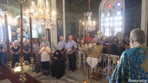Στο Καθολικό της Ιεράς Μονής Αγίας Βαρβάρας, στο Κίνι, ιερούργησε ο Σεβασμιώτατος κ. Δωρόθεος Β' ,με τη λειτουργική και συνευχητική συμμετοχή Εφημερίων της Σύρου, της Ηγουμένης της Μονής, Μοναχής Θεονύμφης,του Επισκόπου ΡΚαθολικών Σύρου κ.Πέτρου, του Χωρικού Αντιπεριφερειάρχη Κυκλάδων κ. Γ.Λεονταρίτη, της Δημοτικής Συμβούλου κας Ηρώς Στίνη, του Διοικητικού των Πυροσβεστικών Υπηρεσιών της Περιφερείας Ν.Αιγαίου, του Αστυνομικού Υποδιευθυντή κ.Κωνστ. Ανθούλη και Αξιωματικών, και πλήθους πιστών, μεταξύ των οποίων πολλοί και εκ των συμμετασχόντων στους Κύκλους Συμμελέτης Αγίας Γραφής Ενοριών της Σύρου, κατά τη διαρρεύσασα ιεραποστολική περίοδο 2016-2017.