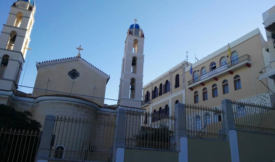 Αγοράστηκε από τη Δημογεροντία, κτίστηκε επί Βαφιαδάκη και ανακαινίσθηκε από την Ι.Μητρόπολη Σύρου