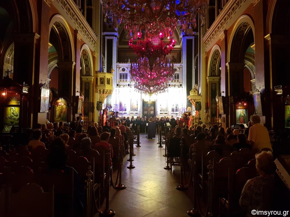 Το θρησκευτικό Δρώμενο-Ορατόριο "Ο Όσιος Σάββας ο Ηγιασμένος", έργο της Μαέστρου Γιάννας Ακριβοπούλου απήλαυσαν στον Ιερό Ναό του Αγίου Νικολάου Ερμούπολης οι φιλόμουσοι Συριανοί, μεταξύ των οποίων ο Αντιδήμαρχος Σύρου-Ερμούπολης κ. Κοσμάς και εκπρόσωποι του Στρατού, της Αστυνομίας και του Λιμενικού Σώματος.