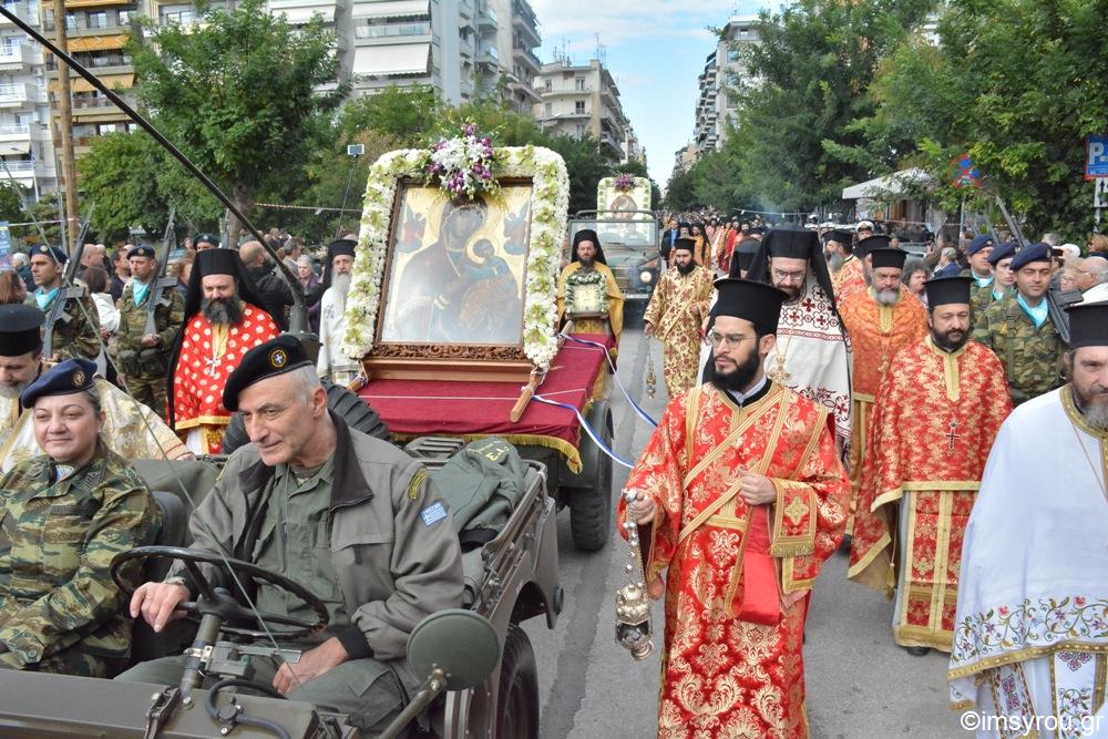 Με τη συμμετοχή πλειάδος Αρχιερέων, Ιερέων και Διακόνων, προεξάρχοντος του Σεβασμιωτάτου Μητροπολίτου Θεσσαλονίκης κ. Ανθίμου, πραγματοποιήθηκε σήμερα το πρωί. στην ηλιόλουστη πόλη της Θεσσαλονίκης, πάνδημη λιτάνευση, φερομένων επί κιλλίβαντος, των ιερών εικόνων της Παναγίας "Κανάλας" και του Αγίου Δημητρίου και των τιμίων Λειψάνων του, πλαισιουμένη από τις Φιλαρμονικές του Στρατού της Αστυνομίας και του Δήμου, με την παρουσία της Υφυπουργού Μακεδονίας-Θράκης κας Κόλλια-Τσαρουχά, εκπροσώπων του Δήμου, του Στρατού και των Σωμάτων Ασφαλείαςκαι πλήθους πιστών οι οποίοι παρηκολούθησαν μετ' ευλαβείας την πόλη ευλογουμένη από τα σεβάσματα αυτά της πίστεώς μας.