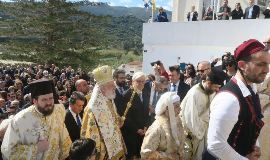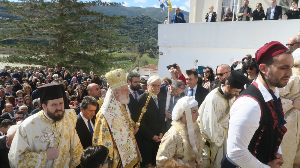 Προ του πέρατος της Θείας Λειτουργίας, ο Σεβασμιώτατος κ. Δωρόθεος Β' καλωσόρισε τον Εξοχώτατο Πρόεδρο της Δημοκρατίας και του προσέφερε συμβολικά αντίγραφο μικρού πλοιαρίου, ευχόμενος" ως καλός και ικανός πηδαλιούχος του σκάφους της Ελλάδος, να το οδηγεί ασφαλές σε λιμάνια ειρήνης, προόδου και ευημερίας".
