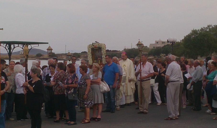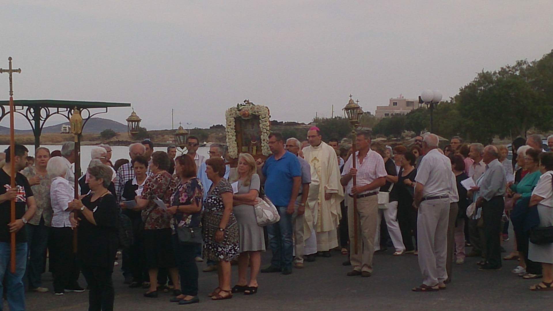 Με τη συμμετοχή πλήθους πιστών πραγματοποιήθηκε χθες το απόγευμα η περιφορά της Εικόνας της Αναλήψεως του Κυρίου από την παραλία της Αζολίμνου προς το εξωκλήσι της Αναλήψεως, όπου τελέστηκε Αρχιερατική Θεία Λειτουργία, χοροστατούντος του Καθολικού Επισκόπου Σύρου Σεβ. π. Πέτρου Στεφάνου.