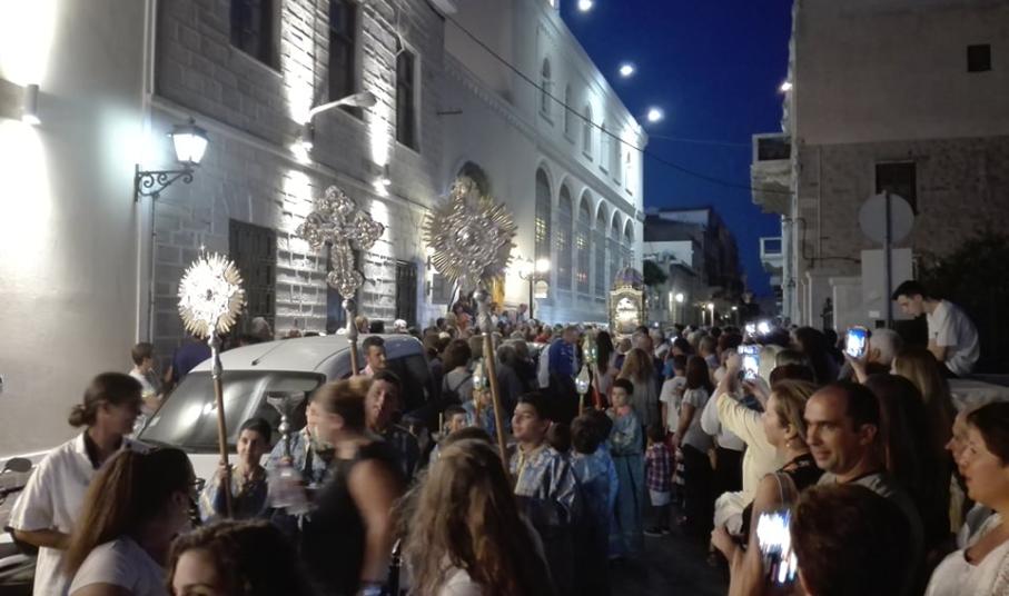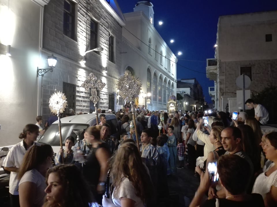Σύσσωμο το χριστιανικό πλήρωμα της Σύρου συμμετείχε και φέτος στις λατρευτικές εκδηλώσεις για τον Εορτασμό της Κοιμήσεως της Θεοτόκου, στον ομώνυμο Ιερό Ναό της Ερμούπολης.