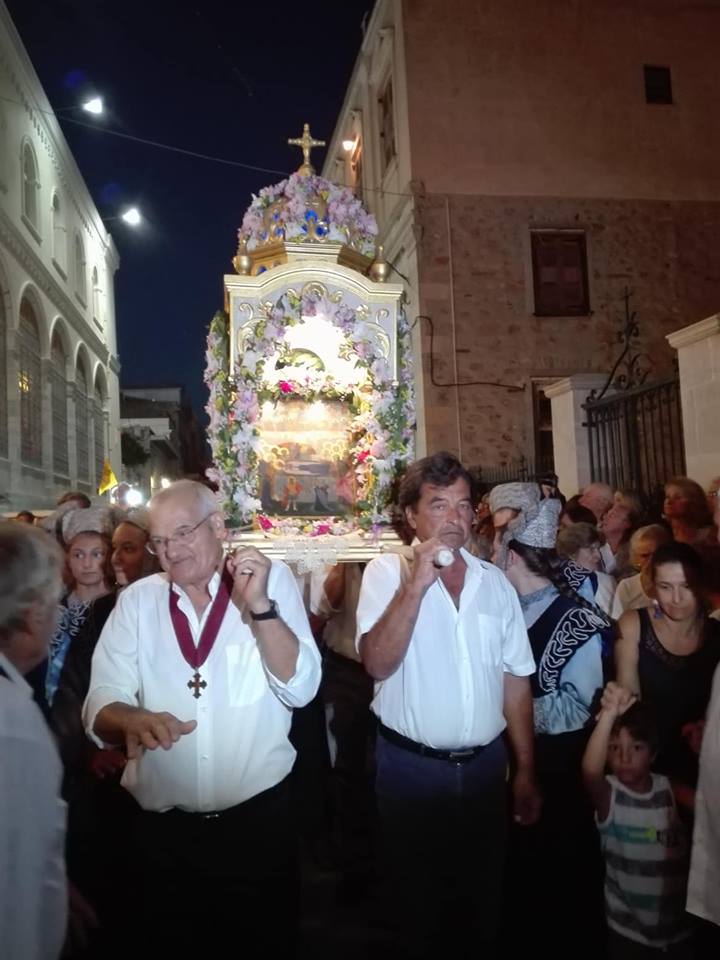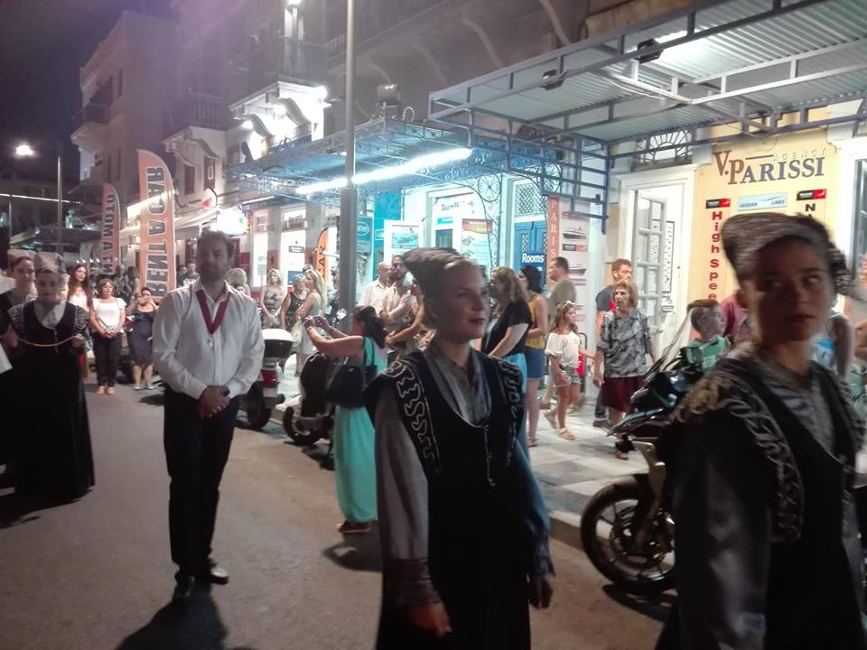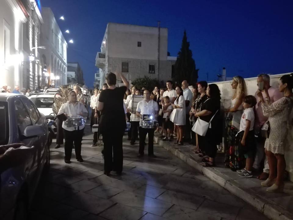 Την Εικόνα συνόδευσαν οι Πρόσκοποι, η Φιλαρμονική Ορχήστρα Σύρου - Ερμούπολης, υπό τη διεύθυνση της μαέστρου Alice Labarche και μέλη του Λυκείου Ελληνίδων Σύρου και ακολούθησε Ιερά Παράκληση.