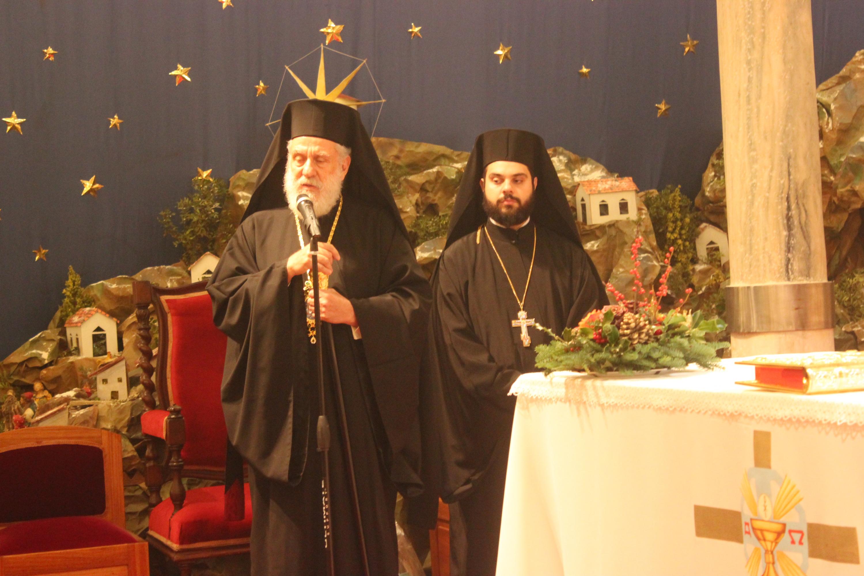 Στη Θεία Λειτουργία – Δοξολογία παρευρέθηκε και ο Σεβασμιώτατος Μητροπολίτης Σύρου κ. Δωρόθεος Β’, ο οποίος τόνισε ότι στις μέρες μας, η ειρήνη δεν είναι αυτονόητη, αλλά ένα ιδανικό που κατακτάται στη ζωή μας. «Από τότε που ο άνθρωπος έστησε έχθρα με το Θεό και έφυγε από την κοινωνία αγάπης μαζί του, αυτή η ειρήνη που πλουσιοπάροχα του δώρισε, χάθηκε. Για να την αποκτήσει και πάλι ο άνθρωπος χρειάστηκε να γίνει ο Θεός άνθρωπος και να σαρκωθεί από την Αγία Παρθένο, λαμβάνοντας όλη την ανθρώπινη φύση για να μας σώσει και να επαναφέρει στην ειρήνη του Θεού» υποστήριξε ο Σεβασμιώτατος, υπογραμμίζοντας ότι η καταξίωση όλων των ευχών μας προϋποθέτει τη δική μας προσωπική καρδιακή ειρήνη.