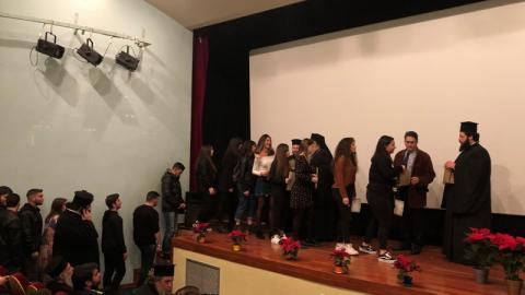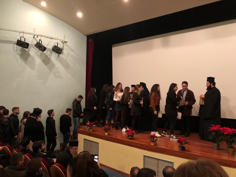 Στην συνέχεια ευλόγησε την Αγιοβασιλόπιτα και στο τέλος ο Σεβασμιώτατος την διένειμε μαζί με τους επαίνους και αναμνηστικά δώρα στους επιτυχόντες.