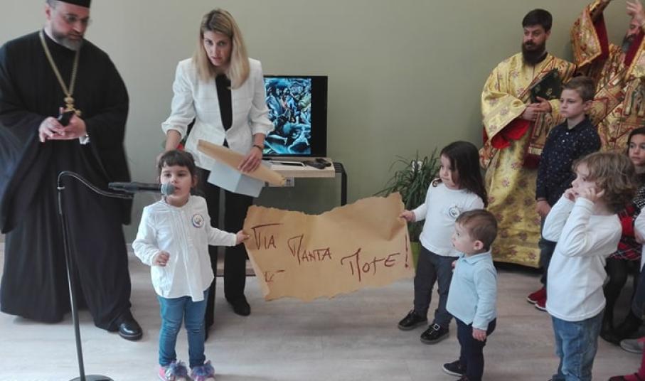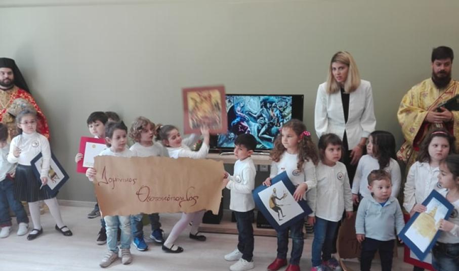 Στο πλαίσιο των εγκαινίων, τα παιδιά του Νηπιαγωγείου της Ιεράς Μητροπόλεως Σύρου «Η Παλάμη του Θεού» παρουσίασαν ένα μικρό ιστορικό του El Greco με τη μορφή ποιημάτων που έφερε τον τίτλο «Για Πάντα Ποτέ».