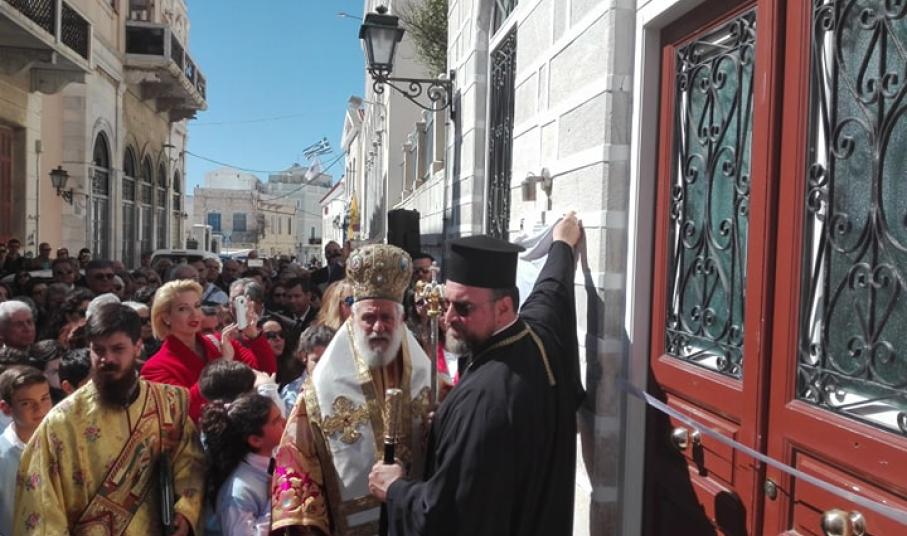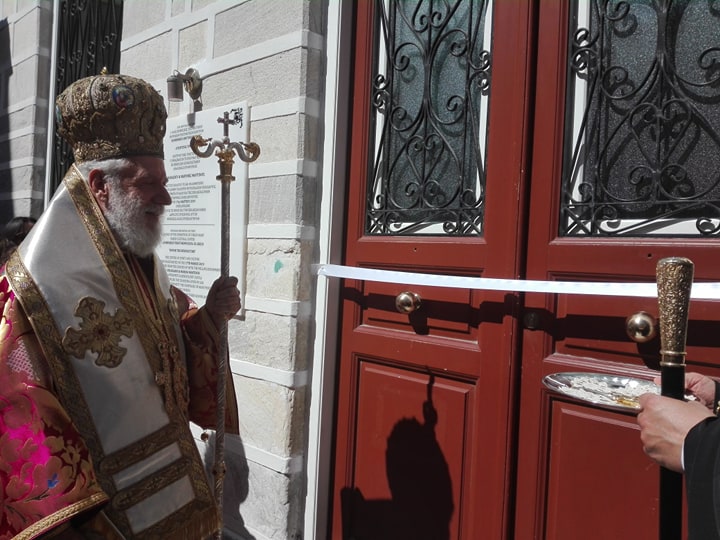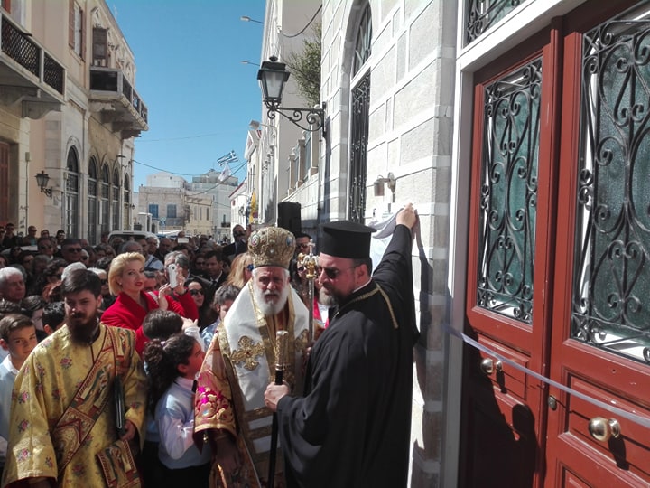 Τα εγκαίνια πραγματοποιήθηκαν χθες το πρωί μετά το πέρας της Αρχιερατικής Θείας Λειτουργίας και της λιτάνευσης των ιερών Εικόνων, που τελέστηκαν στην «ενορία των Ψαριανών», προέξαρχοντος του Σεβασμιωτάτου Μητροπολίτη Σύρου κ. Δωροθέου Β’.
