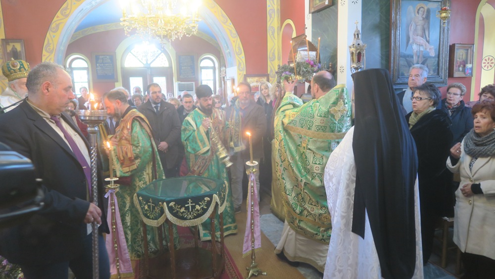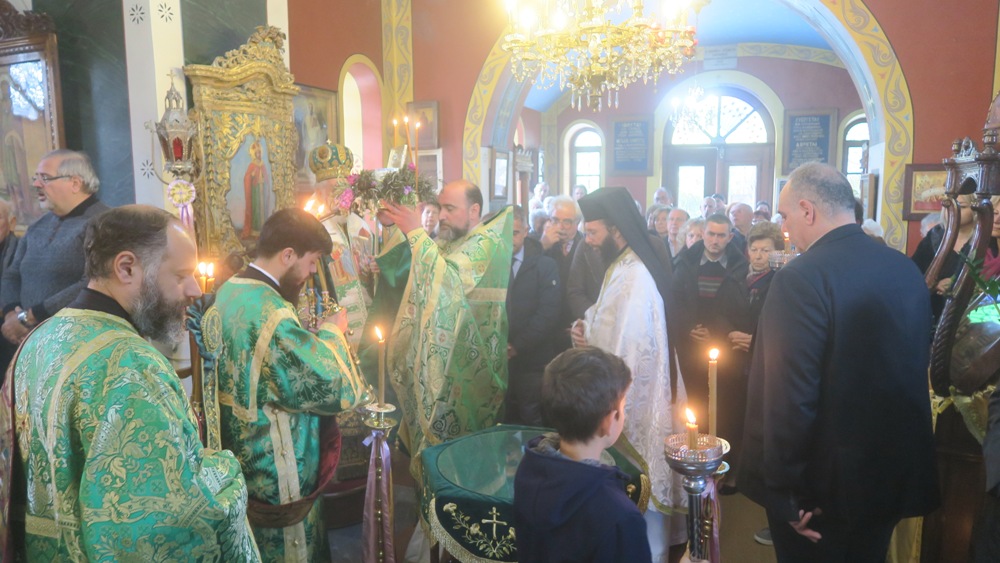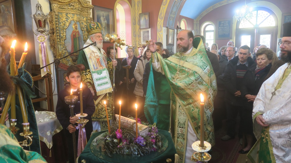 Κατά τη Θεία Λειτουργία, τους ύμνους της οποίας απέδωσαν μέλη της Χορωδίας του Ι. Καθεδρικού Ναού του Αγίου Νικολάου, εξετέθη σε προσκύνηση Τίμιο Ξύλο, κομισθέν από την Ιερά Μονή Ζωοδόχου Πηγής Άνδρου, διά της Ηγουμενευούσης Μοναχής Παρθενίας, την οποία ο Σεβασμιώτατος κ. Δωρόθεος Β’ ιδιαιτέρως ευχαρίστησε.