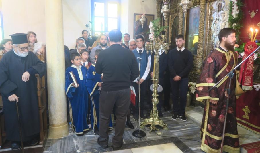 Τους ύμνους της Θείας Λειτουργίας, για πρώτη φορά και μετά από εξάμηνη προσπάθεια του μουσικοδιδασκάλου κ. Αποστόλου Μαρκόπουλου, απέδωσε χορωδία ενηλίκων και παιδιών, με τη βοήθεια των Ιεροψαλτών.