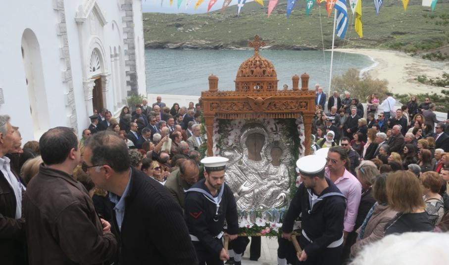 Ακολούθησε πάνδημος λιτανεία της Αγίας Εικόνας, πλαισιωμένη από τις Φιλαρμονικές του Δήμου Κορίνθου, του Μουσικού Συλλόγου Άνδρου, νέους και νέες με παραδοσιακές ενδυμασίες, μαθητές του Ναυτικού Λυκείου Άνδρου, άγημα του Ναυτικού Παρατηρητηρίου Αμμολόχου και από τη Φρεγάτα « Κουντουριώτης», η οποία από χθες έχει αγκυροβολήσει προ του φάρου «Τουρλίτη».