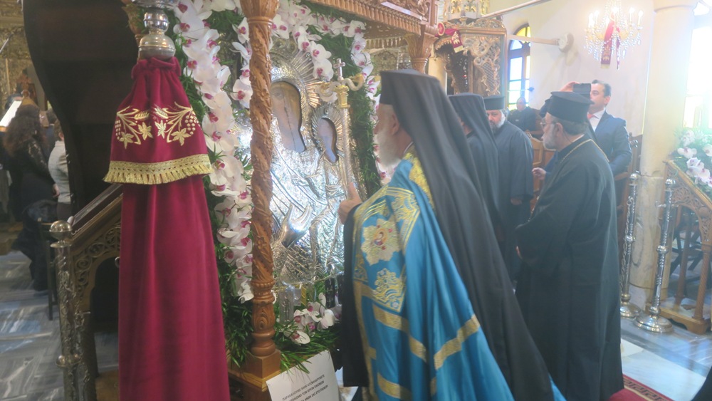Μέσα σε όλη αυτή την πολυπράγμονα και θορυβώδη πραγματικότητα, με τον αγοραίο λόγο και τις φθηνές λέξεις, η εικόνα της Παναγιάς μας μας καλεί όλους να αναλάβουμε τις ευθύνες μας, με σιωπή και περισυλλογή. Δεν έχουμε δικαίωμα, κατέληξε, να ισχυριζόμαστε ότι δεν μπορούμε να κάνουμε τίποτα μόνοι μας, γιατί όλοι μας θα λογοδοτήσουμε απέναντι στην ιστορία.»