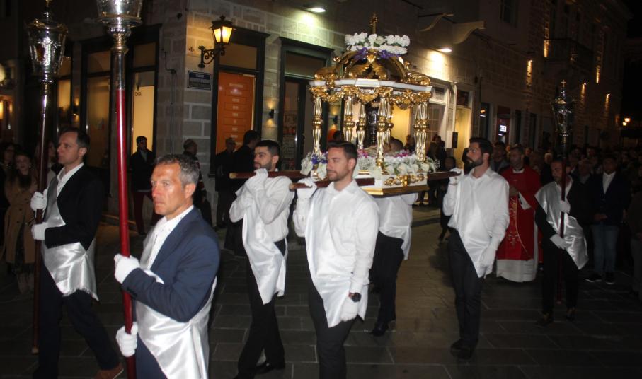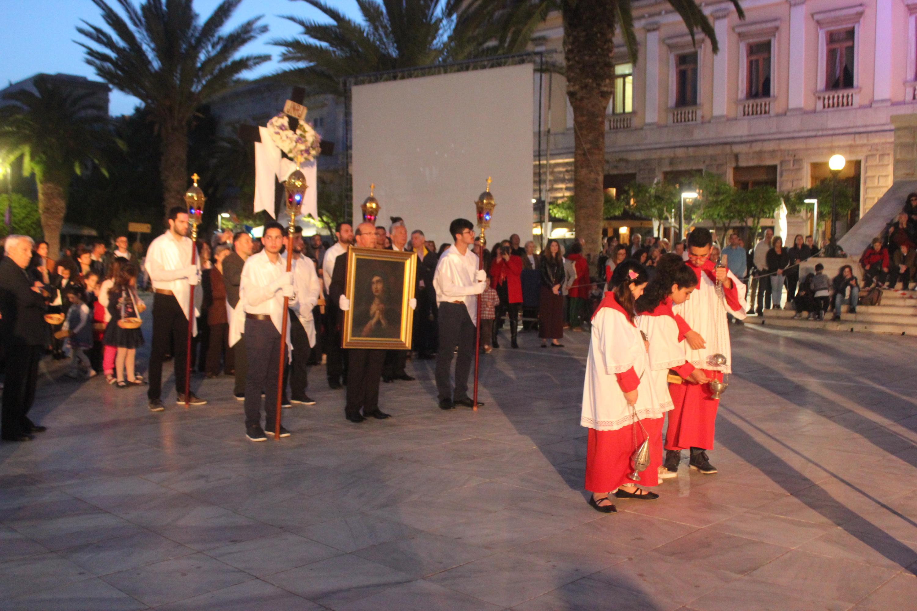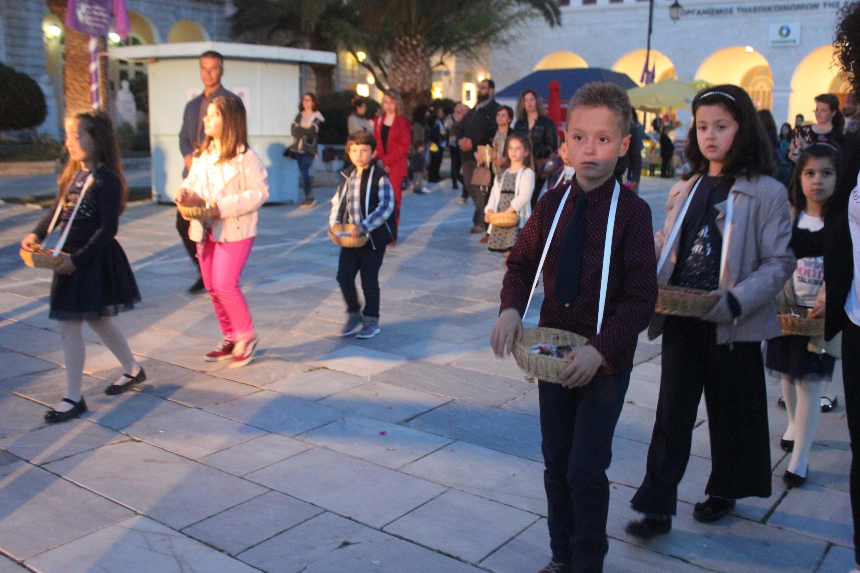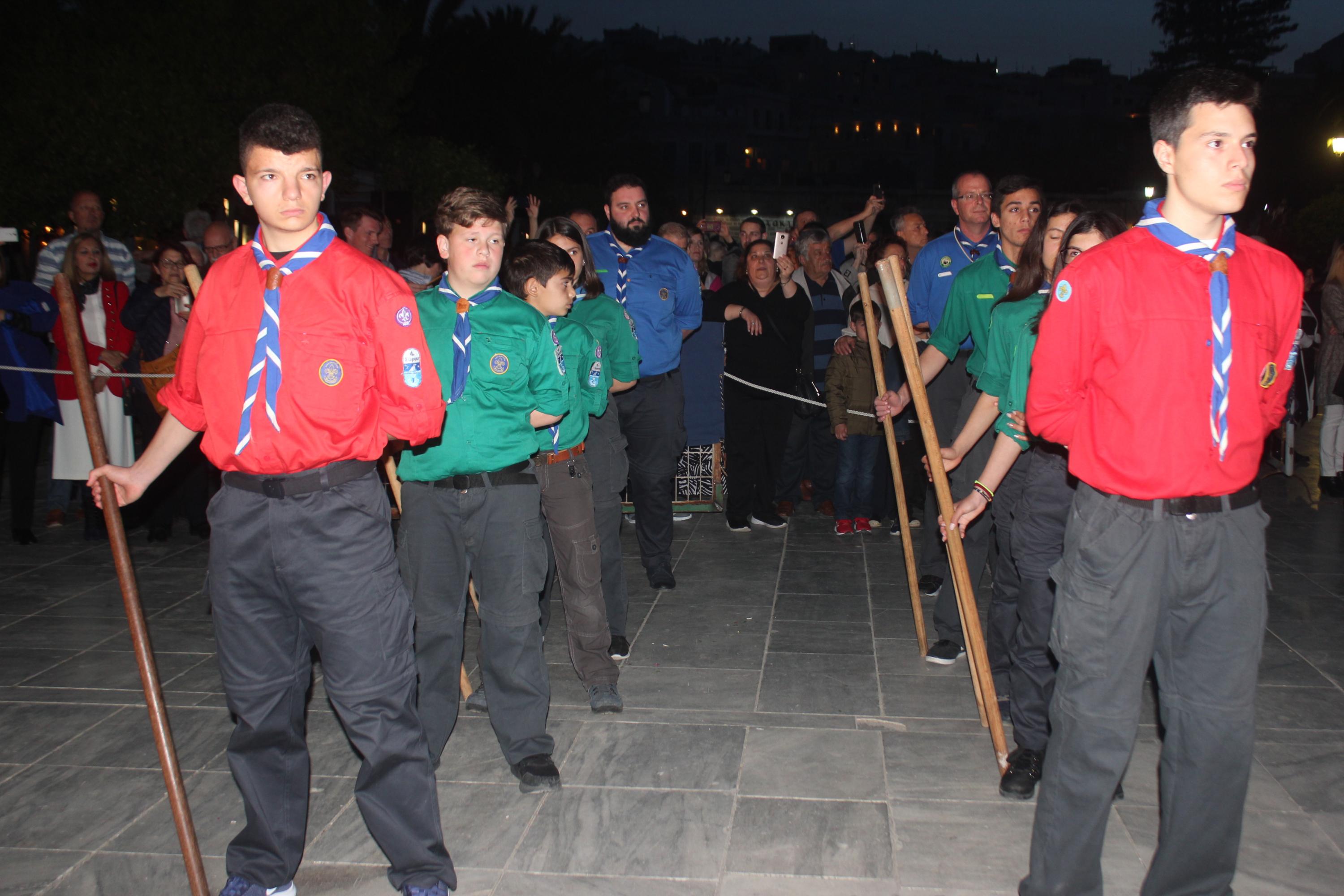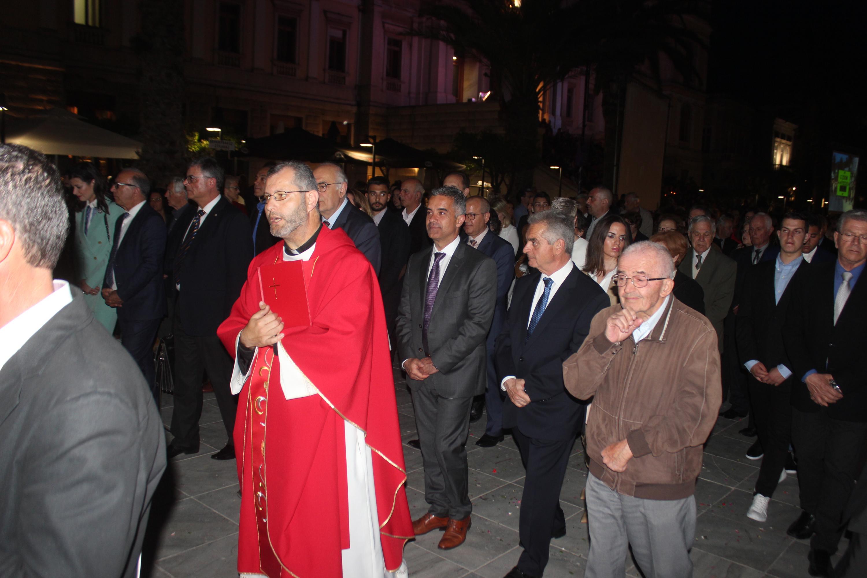 Η τελετή ξεκίνησε με την ακολουθία του Λόγου, την ανάγνωση του Θείου Πάθους ενώ στη συνέχεια ακολούθησε η Σταυροπροσκύνηση για να ολοκληρωθεί η ακολουθία με την περιφορά του Επιταφίου στους ώμους των νέων, στους δρόμους της Ερμούπολης.