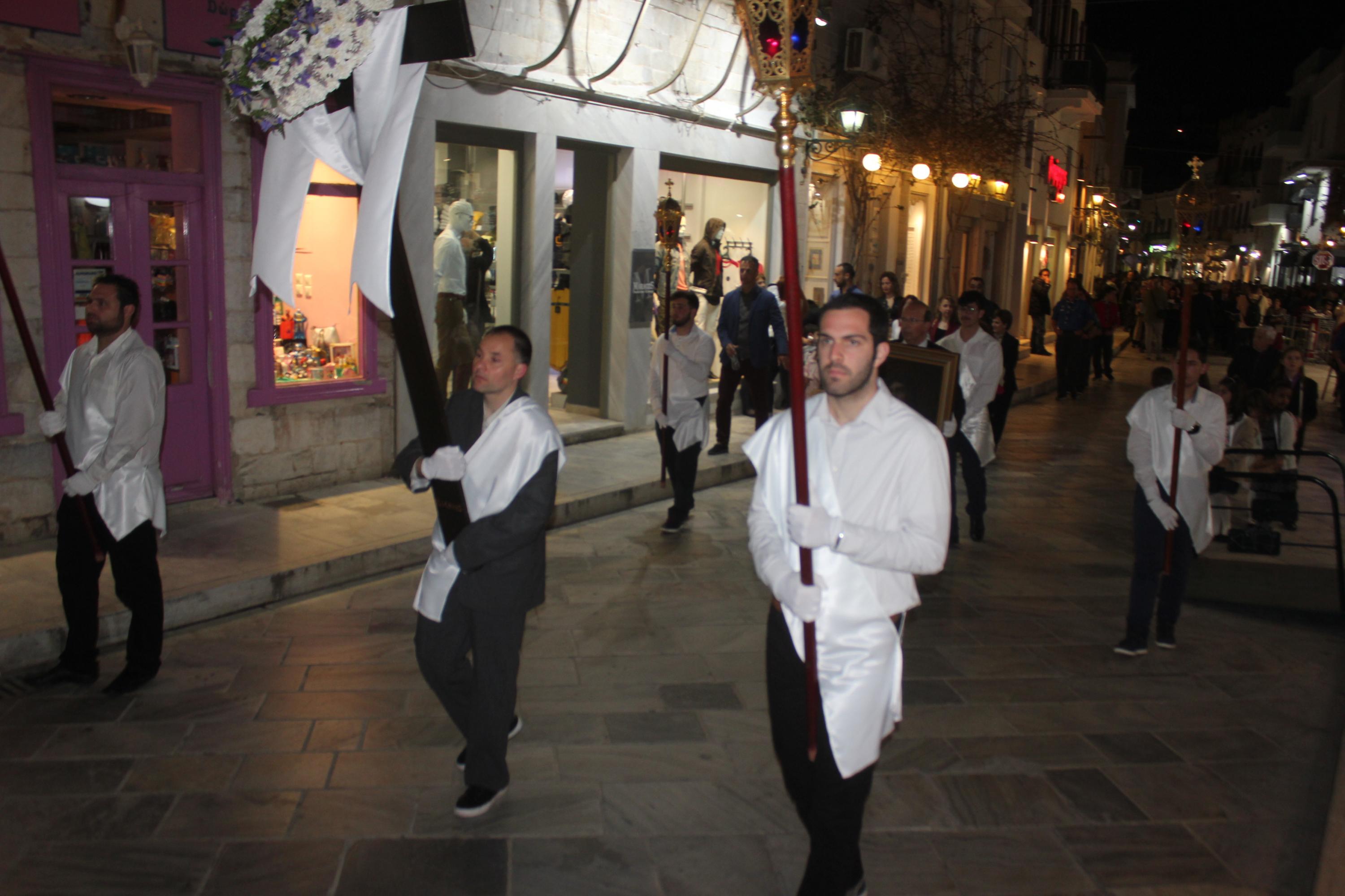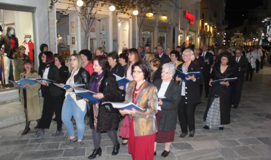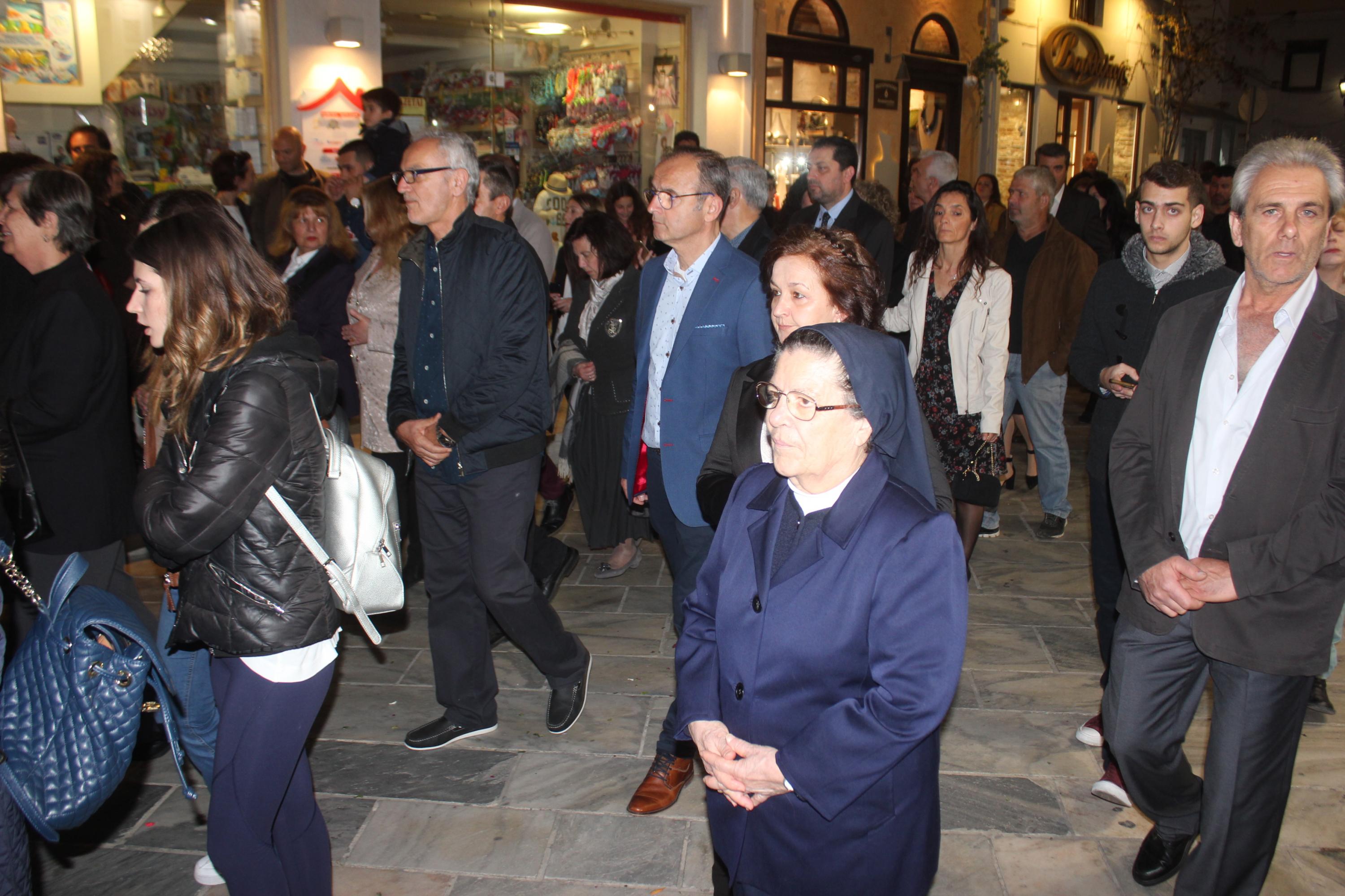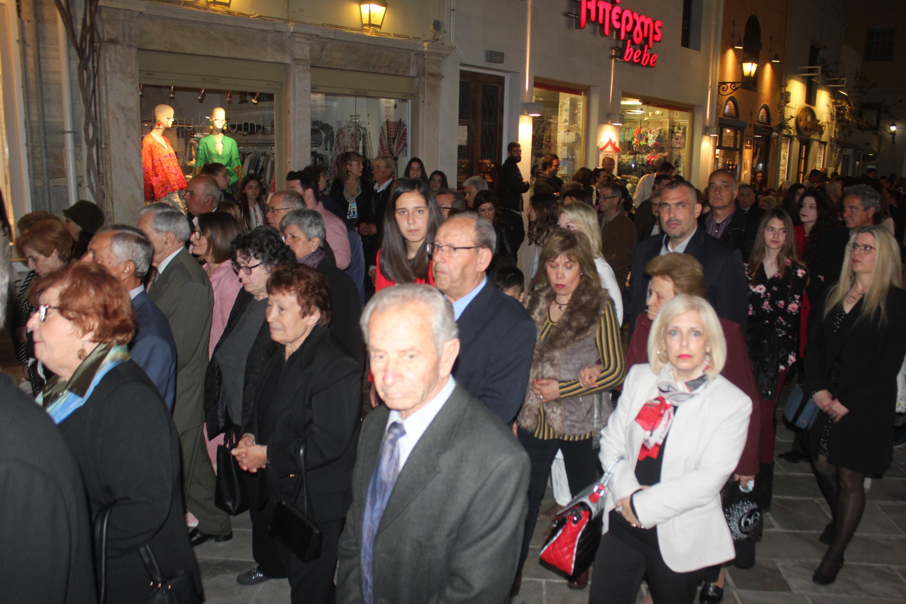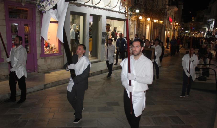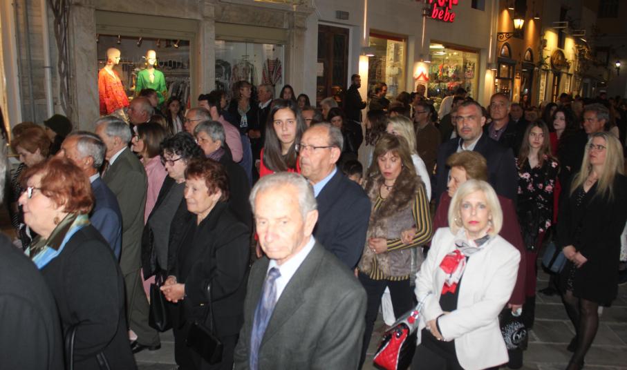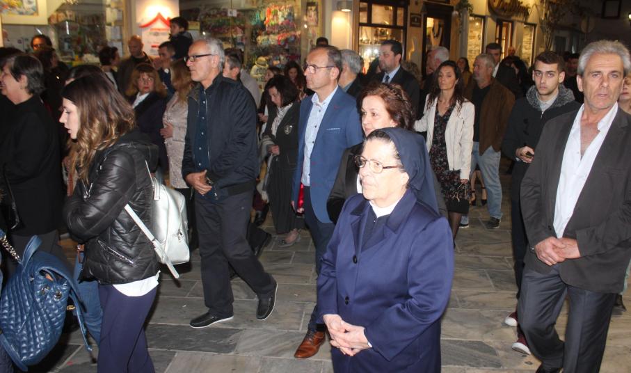 Την τελετή των Αγίων Παθών, την οποία πλαισίωσε η πολυφωνική χορωδία του Ι.Ν. Ευαγγελιστρίας, παρακολούθησαν ο βουλευτής Κυκλάδων, Αντώνης Συρίγος, εκπρόσωποι της τοπικής αυτοδιοίκησης, αλλά και πλήθος κόσμου, ο οποίος συνόδευσε τον Επιτάφιο.