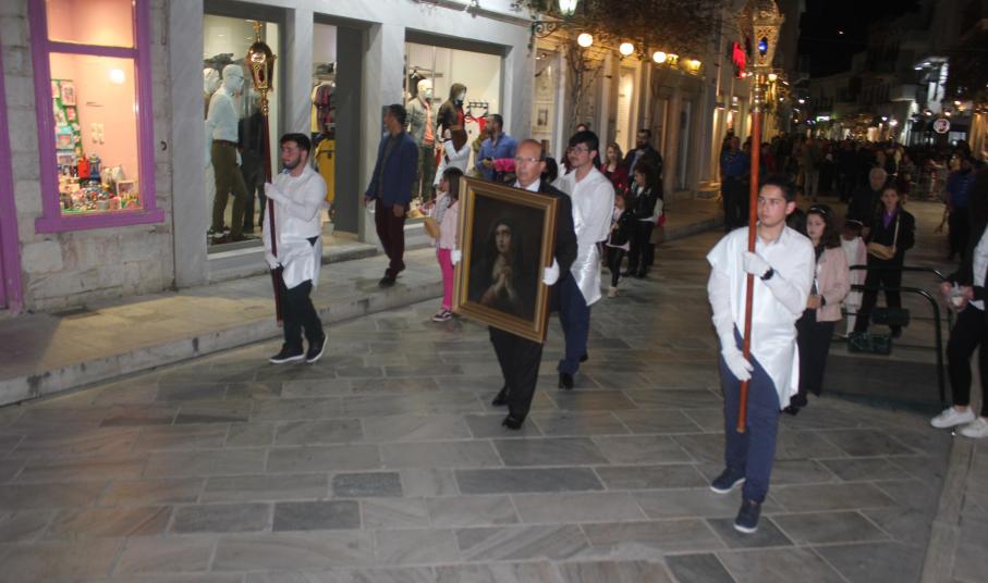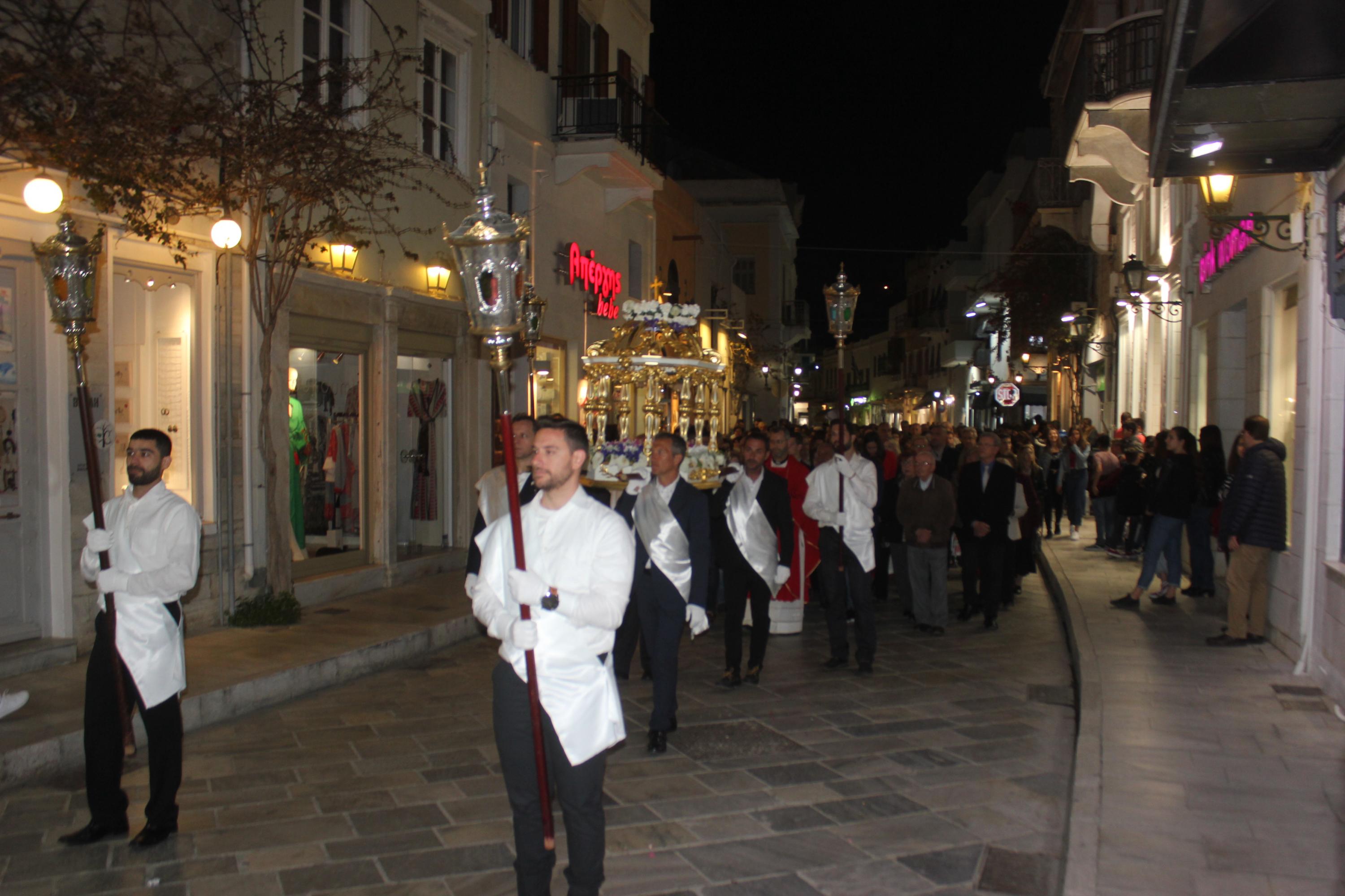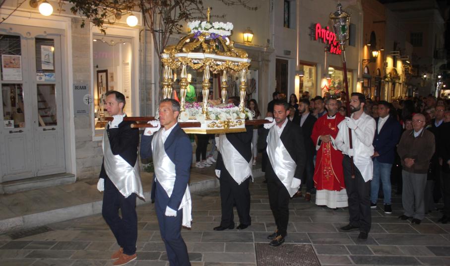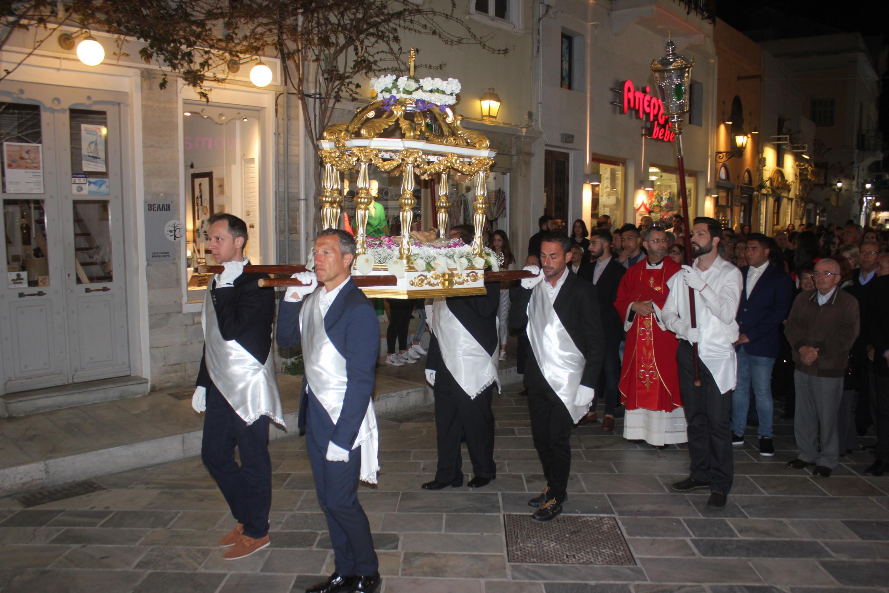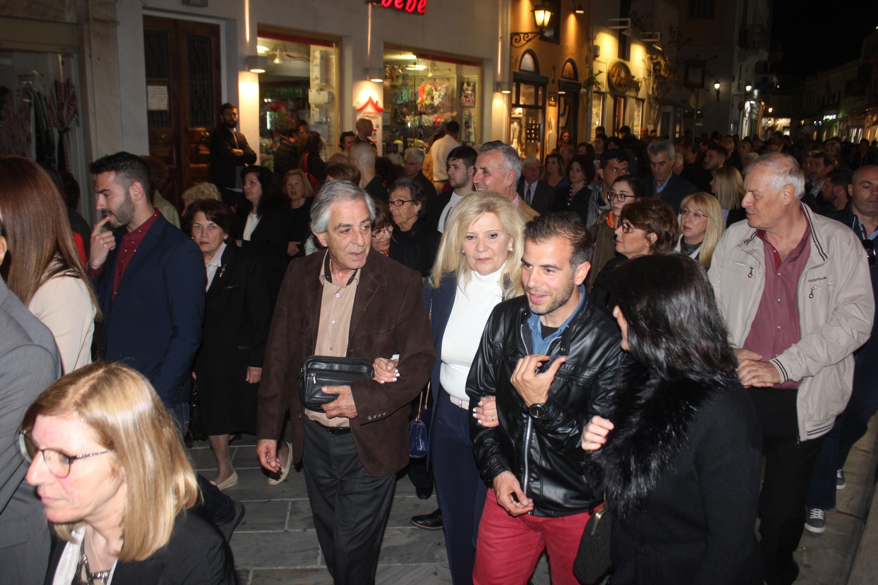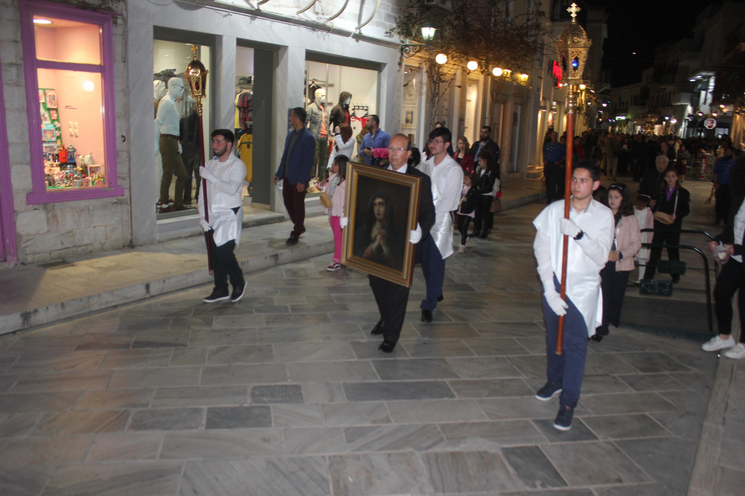 Την τελετή των Αγίων Παθών, την οποία πλαισίωσε η πολυφωνική χορωδία του Ι.Ν. Ευαγγελιστρίας, παρακολούθησαν ο βουλευτής Κυκλάδων, Αντώνης Συρίγος, εκπρόσωποι της τοπικής αυτοδιοίκησης, αλλά και πλήθος κόσμου, ο οποίος συνόδευσε τον Επιτάφιο.