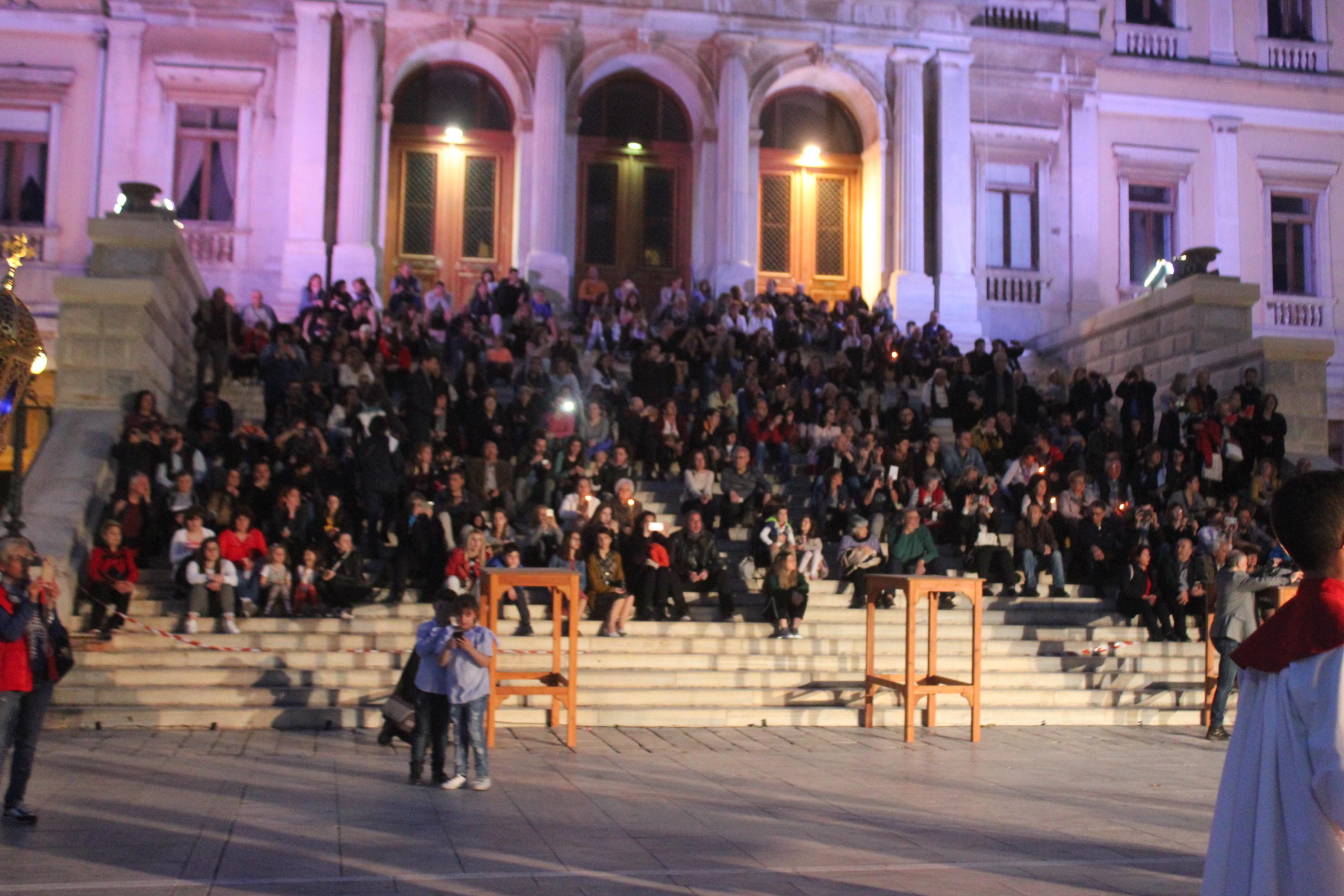 Συμμετέχοντας στην κορύφωση του Θείου Δράματος, δεκάδες πιστοί κατέκλυσαν τον Καθολικό Ναό, όπου τελέστηκε απόψε η Ακολουθία των Αγίων Παθών του Κυρίου.