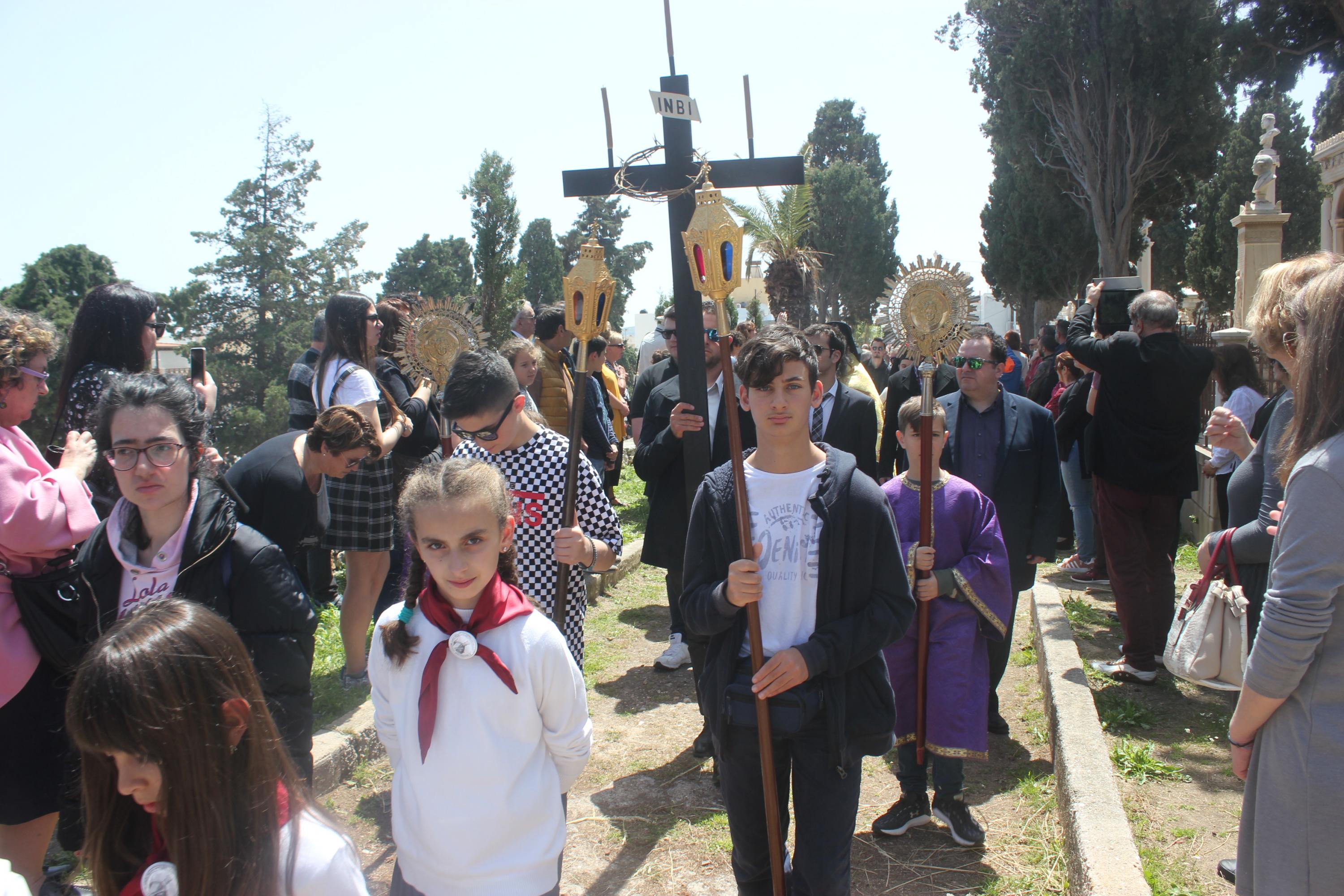Οι ψυχές των κεκοιμημένων, των συγγενών, των φίλων, των συζύγων, των παιδιών μας, των δασκάλων μας και όλων εκείνων εύχονται και προσεύχονται για εμάς από τη φωτεινή αιωνιότητα, περιέβαλαν τα αγαπημένα τους πρόσωπα κατά τη σημερινή λιτάνευση του Επιταφίου στο Κοιμητήριο του Ιερού Ναού Αγίου Γεωργίου.