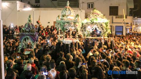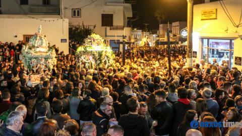 Ειδικότερα, στη Νάξο για μία ακόμη χρονιά συνέρρευσε πλήθος πιστών στους ναούς και στη Μητρόπολη καθ΄ όλη τη διάρκεια της Μεγάλης Εβδομάδας, ενώ ξεχωριστή στιγμή αποτέλεσε η διαδικασία της περιφοράς των ιερών κουβουκλίων.