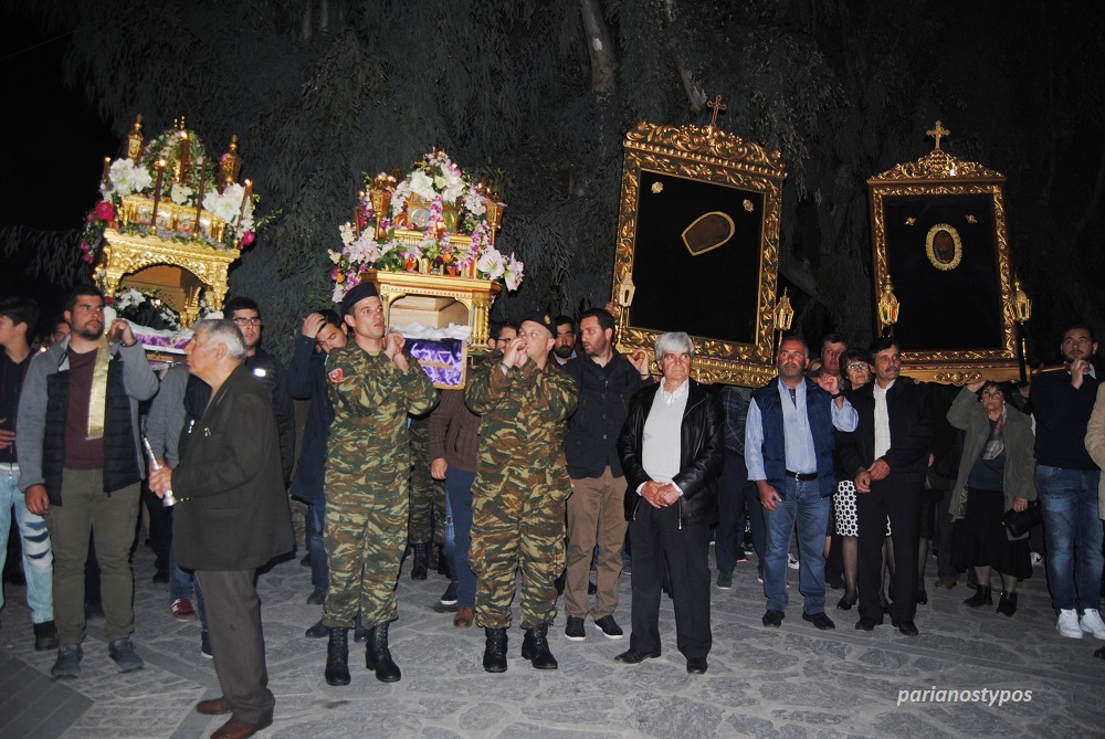 Σε κλίμα περισυλλογής και βαθιάς συγκίνησης πραγματοποιήθηκαν οι θρησκευτικές εκδηλώσεις και στο νησί της Πάρου με ξεχωριστή στιγμή το βράδυ της Μεγάλης Παρασκευής να αποτελεί η αναπαράσταση των Θείων Παθών.