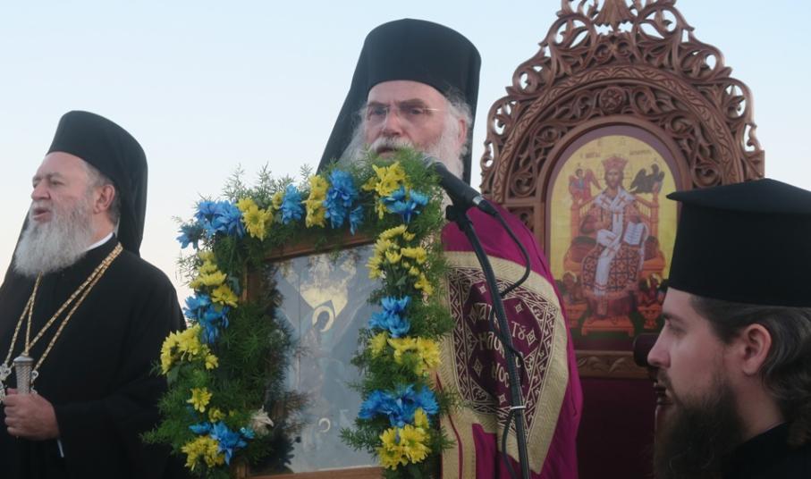 Μετά την αποβίβασή της, δια χειρών του Πανηγυρά, η ιερά Εικόνα μετεφέρθη στον Ιερό Ναό υπό τους παιάνες της Φιλαρμονικής του Λιμενικού Σώματος, διά χειρών του Σεβασμιωτάτου Μητροπολίτου Μεσογαίας κ. Νικολάου, ο οποίος προεξήρχε του Πολυαρχιερατικού Εσπερινού, ο οποίος ακολούθησε.